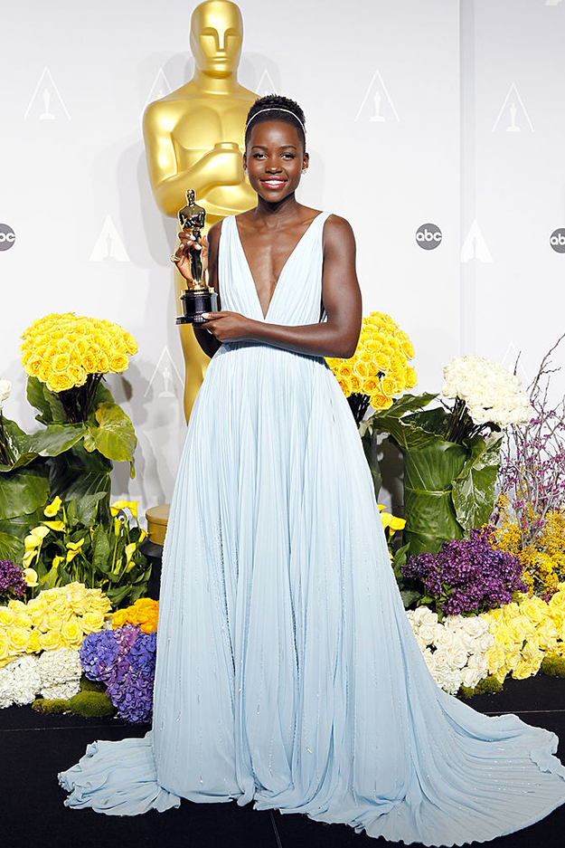 Люпита Нионго стала настоящим открытием 2013 года. Актриса получила «Оскар» за лучшую женскую роль второго плана в драме «12 лет рабства». Безоговорочной победой стало и ее небесно-голубое струящееся платье Prada, в котором девушка была похожа на современную диснеевскую принцессу.