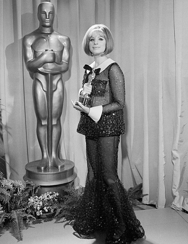Платье, в котором Барбра Стрейзанд вышла получать «Оскар» за «Смешную девчонку» в 1969 году, навсегда вошло во все подборки как лучших, так и худших платьев в истории «Оскара». Помимо того, что Барбра надела брючный костюм вместо традиционного платья, так он еще и оказался полностью прозрачным. Актриса призналась, что не подозревала, что в сфете софитов ее одежда будет просвечивать. Но какая разница, если у тебя «Оскар» за лучшую женскую роль.