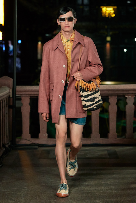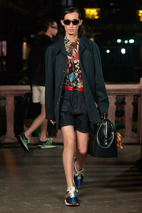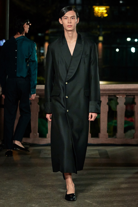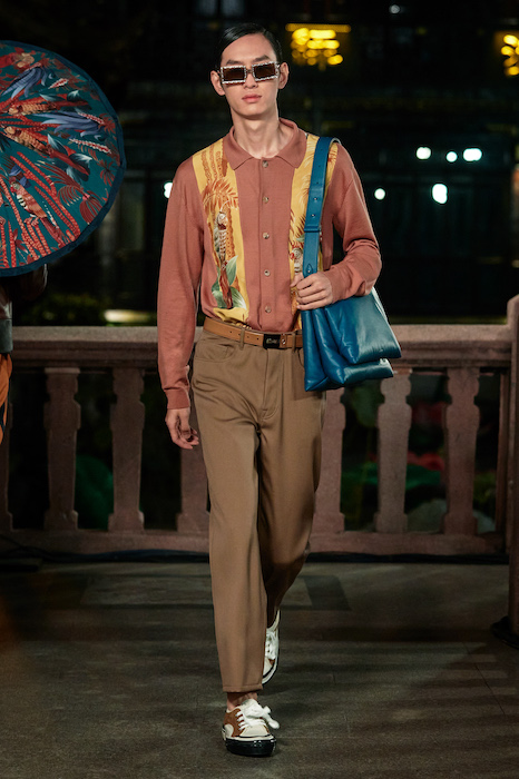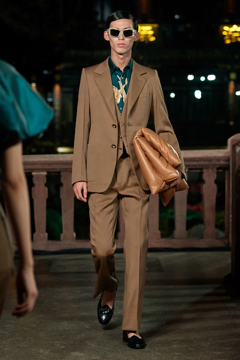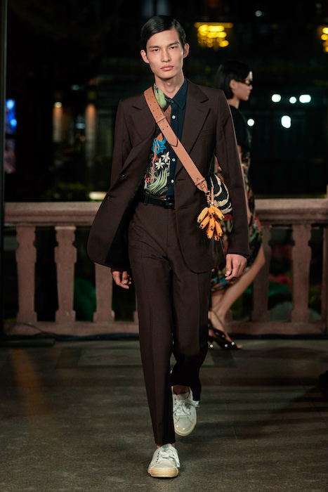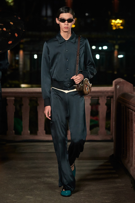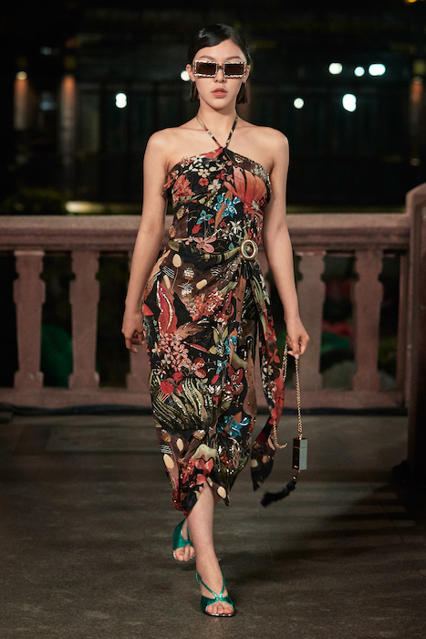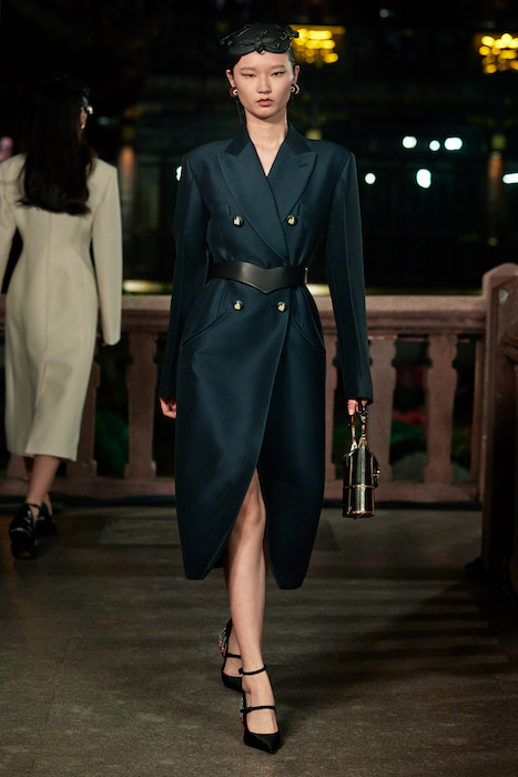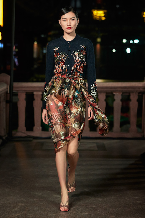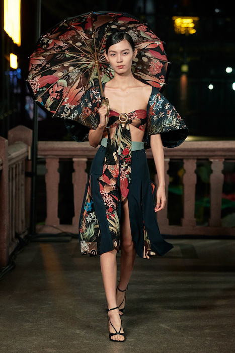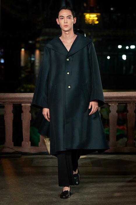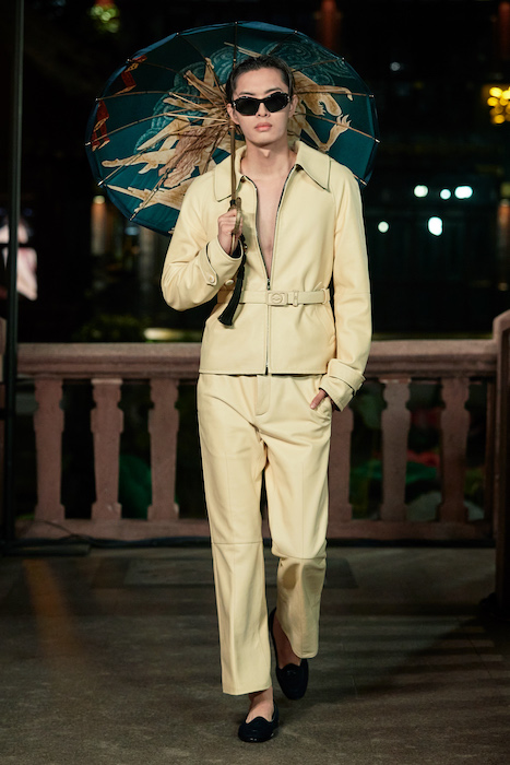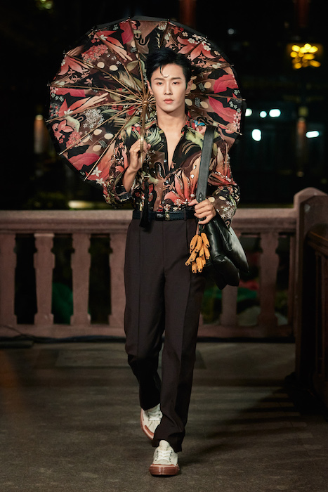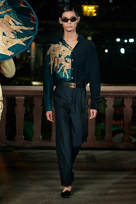 Показ Lanvin прошел не в Париже, как обычно, а в шанхайском саду Юй Юань (бренд принадлежит китайскому конгломерату Fosun International). В новой коллекции креативный директор Бруно Сиалелли обратился к истории дома — первый образ, к примеру, напрямую цитировал платье Жанны Ланван 1920-х годов. Другие архивные вещи Lanvin изобразили на восточный манер: используется традиционная китайская вышивка, а некоторые силуэты напоминают о ханбоке, корейском костюме. Выглядит все это по-голливудски роскошно: объемные многослойные юбки, плащи из позолоченной кожи, кожаные жакеты в ретро-силуэтах и вышитые жемчугом банты на поясе.