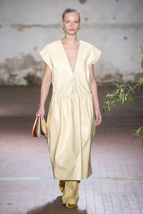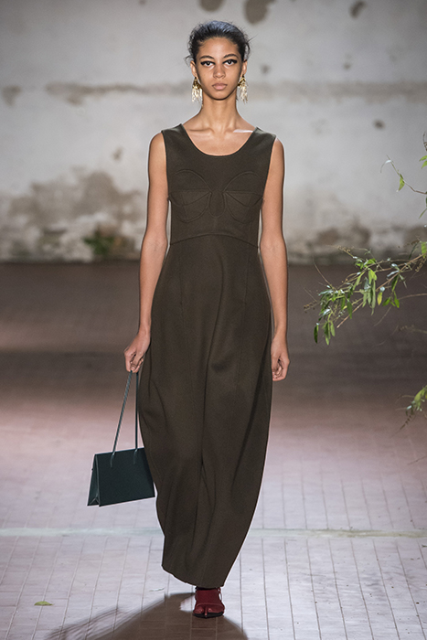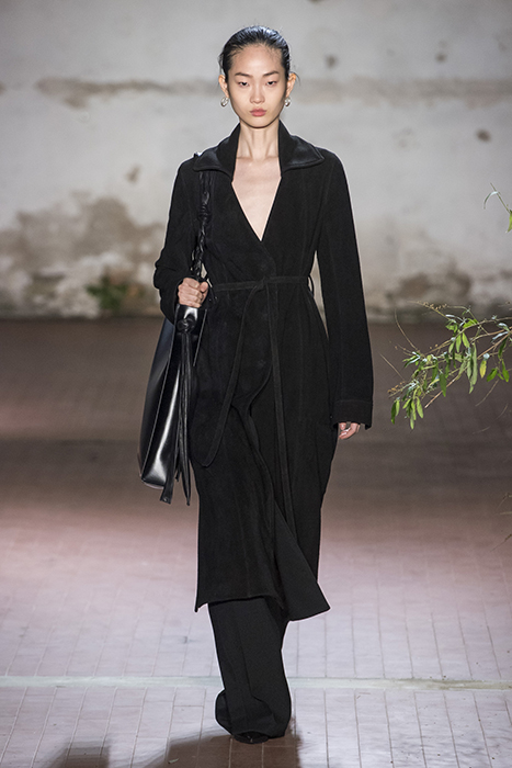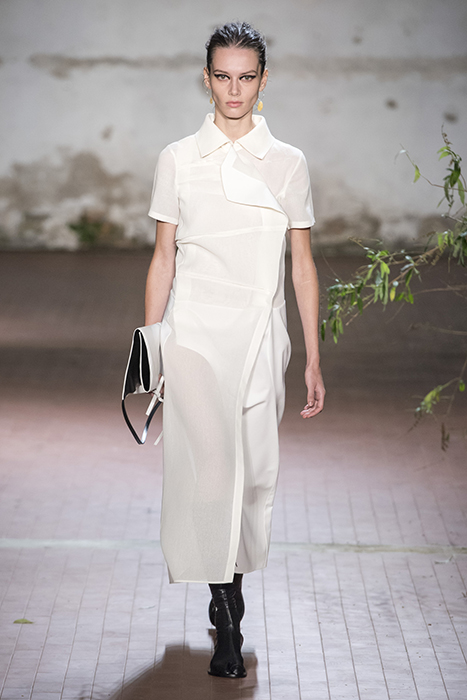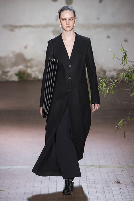Сезонность вещей Jil Sander — условность: одежда марки будет смотреться актуально сегодня, через пять лет и через десять. В новой коллекции Люк и Люси Мейер показали атласные костюмы с жемчужным отливом, пуховики-пончо, уютные костюмы из валяной шерсти и белоснежные платья с отделкой по краям, как на скатерти. На некоторые вещи, как признаются сами дизайнеры, повлияло их путешествие по префектуре Симанэ на юго-западе Японии: несколько брюк и платьев сшиты из японского денима совершенного синего оттенка, на пальто и жакетах можно разглядеть вышитые иероглифы и цаплю. В японской символике птица олицетворяет такт и деликатность — всё то же самое можно сказать и про вещи Jil Sander.