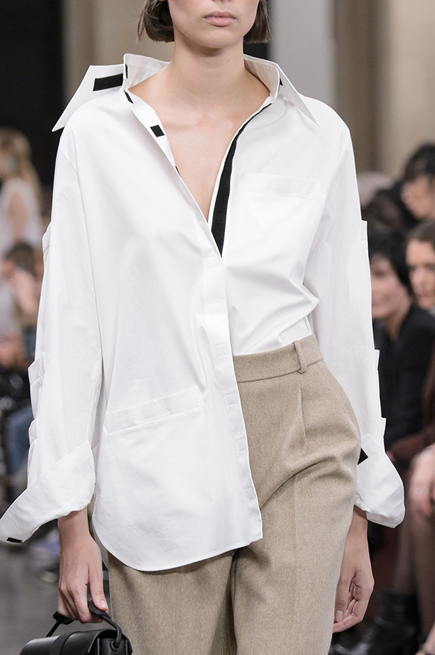 Основные элементы: оверсайз-кардиганы и пальто, юбки миди свободного кроя, прямые брюки, строгие платья с запахом, украшенные цветами, пайетками или принтом платья в пол, шубы и дубленки