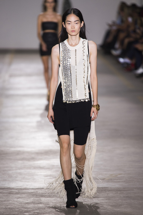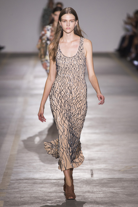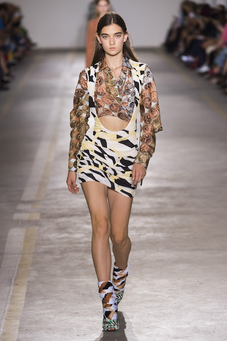 До подготовки весенне-летней коллекции новый креативный директор Roberto Cavalli Пол Сурридж путешествовал по Северной Африки — палитра вещей, напоминающая о пустыне, пришла именно оттуда. Это второй показ дизайнера для бренда, и становится ясно, что Сурриджу одинаково хорошо удается делать и беспощадно гламурные вещи в духе прежнего Roberto Cavalli, и комплекты в современном контексте моды: мы, например, без ума от костюма с велосипедками вместо брюк.