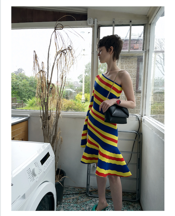 Лукбук новой коллекции Джонатана Андерсона снова снимал Юрген Теллер. Кадры сделаны в квартире, и это ощущение, когда ты в своей спальне можешь быть кем угодно, и хотел передать дизайнер в коллекции. В нее вошли майки с карманами, платья в пеструю полоску, шорты и яркие свитеры; вещи украшены вышивкой и принтами с клубникой. Домашнюю атмосферу также передают рукодельные платья из бусин (зеленые очень напоминают горошек) и платье-подушка. В линии обуви — лоферы без задника в новых оттенках и шлепанцы в тон ярким свитерам и платьям.