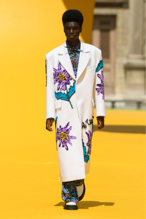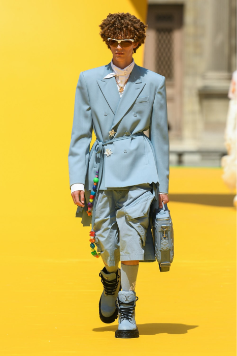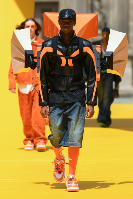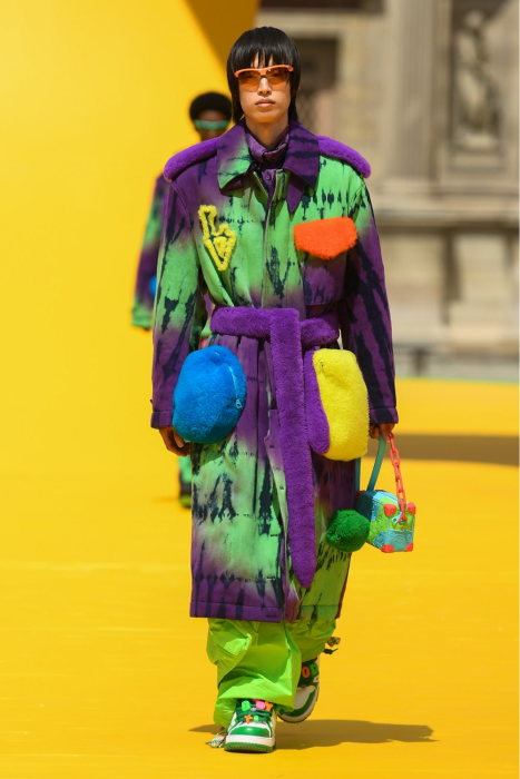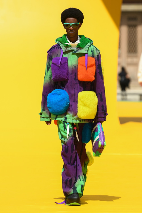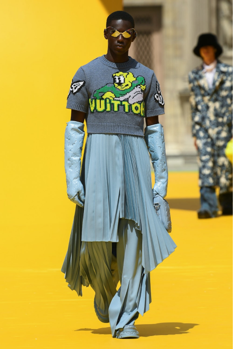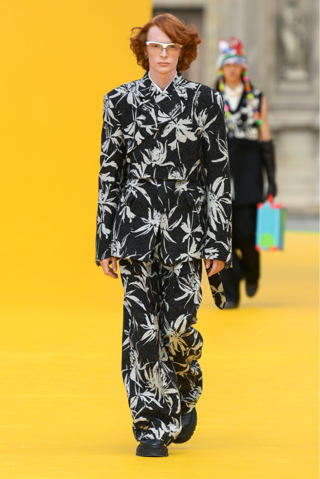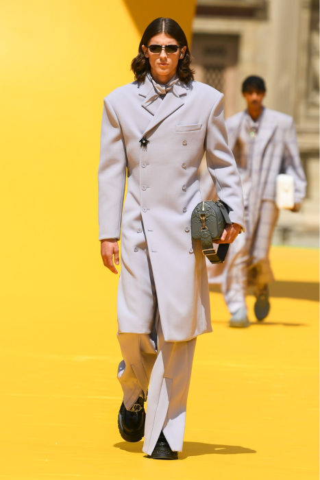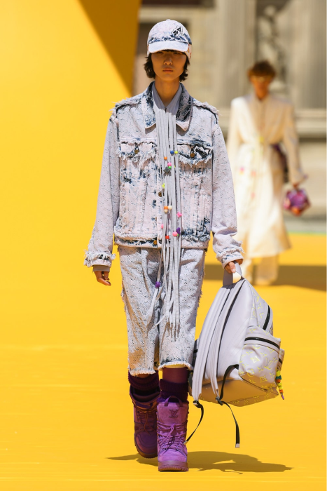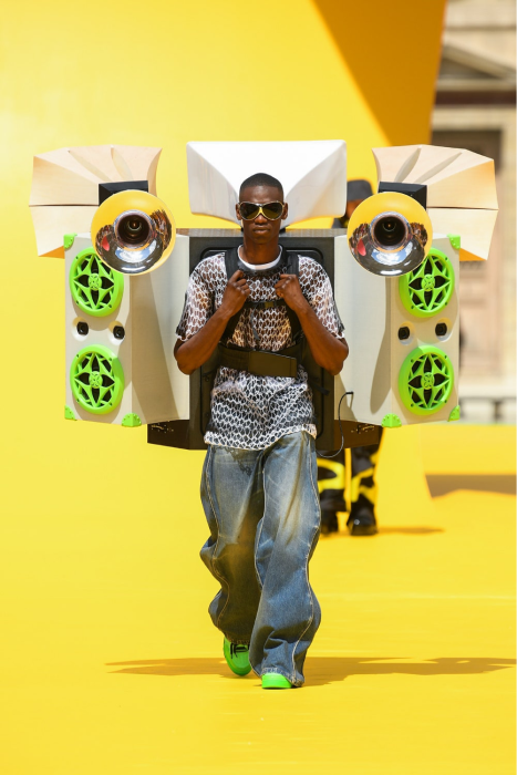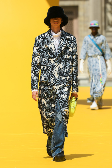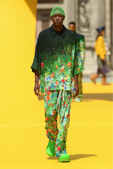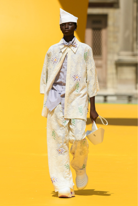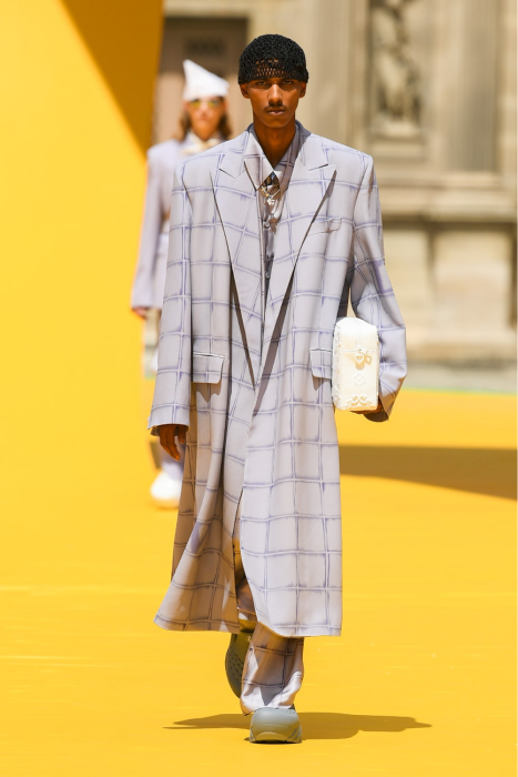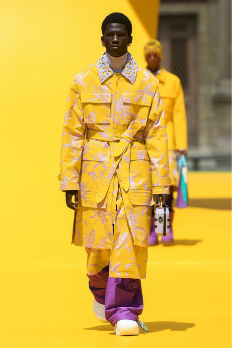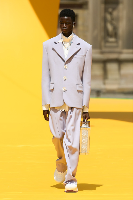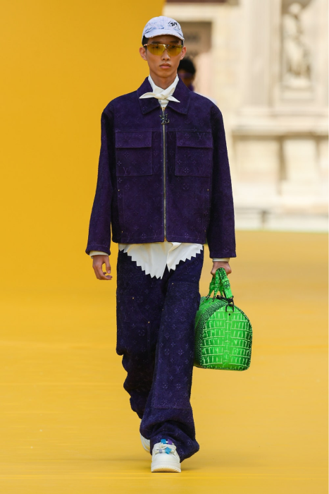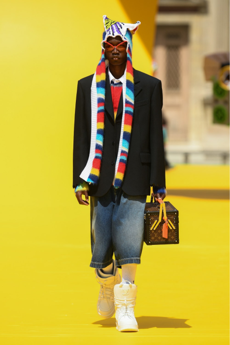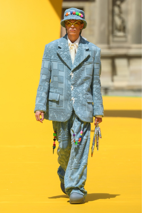 Louis Vuitton проводит уже третий показ памяти Вирджила Абло, который умер в конце 2021-го. Пока не известно, кто станет новым креативным директором мужской линии дома (среди претендентов названы Мартин Роуз, Грейс Уэльс Боннер и Джерри Лоренцо), но, по слухам, коллекция сезона весна-лето 2023 станет последней, созданной командой Вирджила по его бесконечным идеям. Шоу открылось выступлением Marching 100 — оркестра университета Флориды в Таллахасси. На это учебное заведение распространялась стипендиальная программа Post-Modern, которую основал Абло, чтобы поддержать темнокожих студентов креативных направлений. В коллекции было всё, что он успел дать Louis Vuitton за три года работы: тейлоринг и мужские плиссированные юбки, пуховики в пол, расшитые цветами пальто и яркие кожаные куртки, деформированные будто под эффектом глитча. В своих интервью Абло часто говорил, что всем нам будет полезно воссоединиться с нашим детским сознанием. Эту идею в новой коллекции воплощают цветные шапки с завязками из цветных кубиков, бумажные самолетики на строгих костюмах, яркие чемоданчики и большой рюкзак с громкоговорителями и колонками.