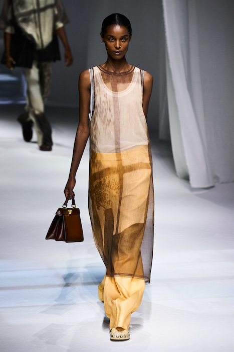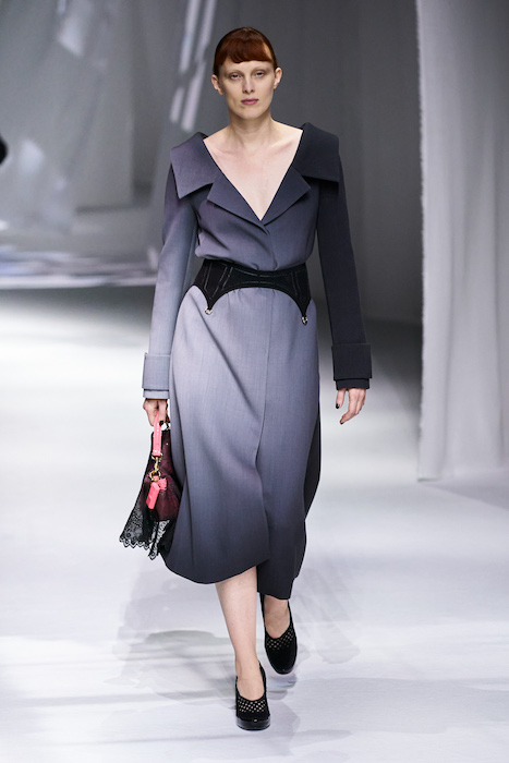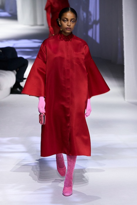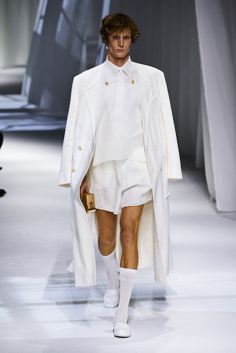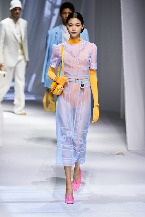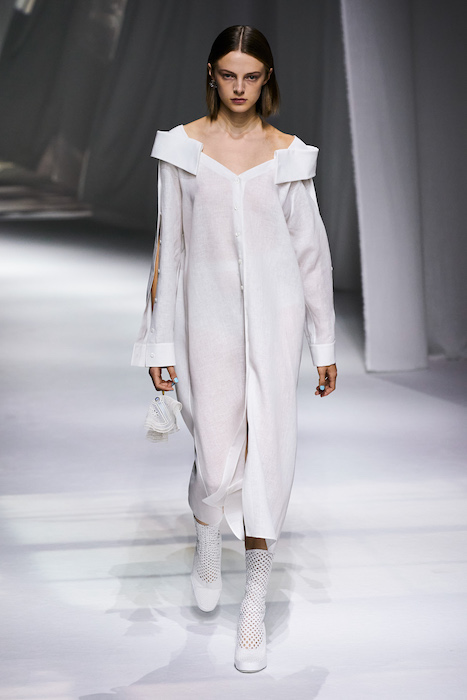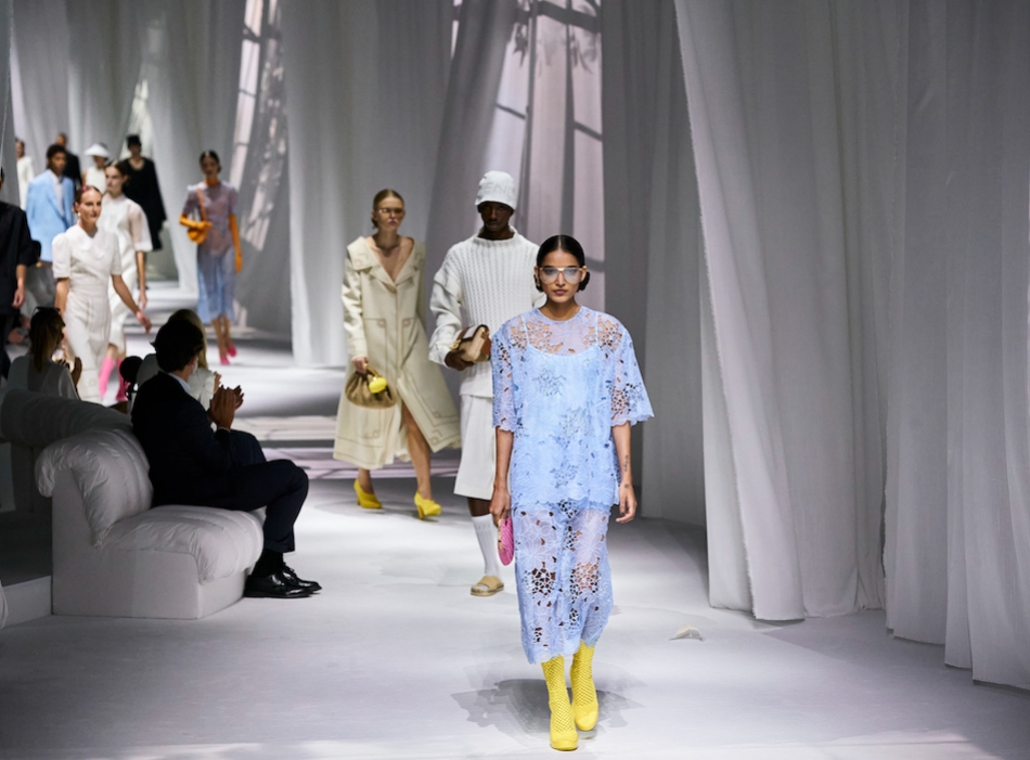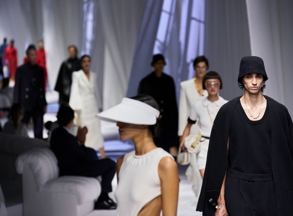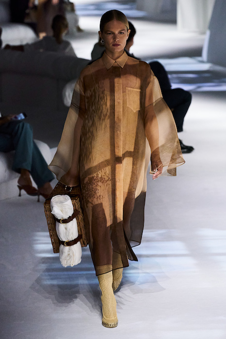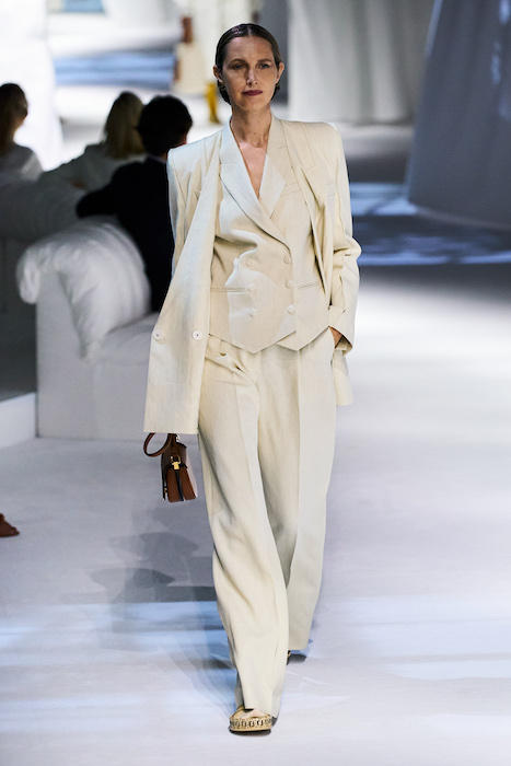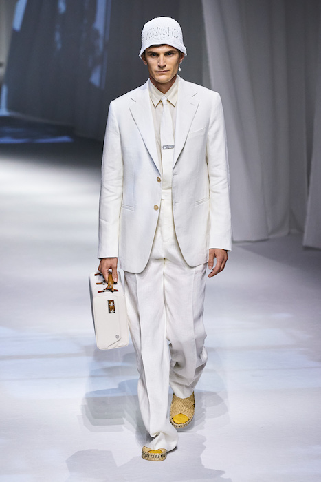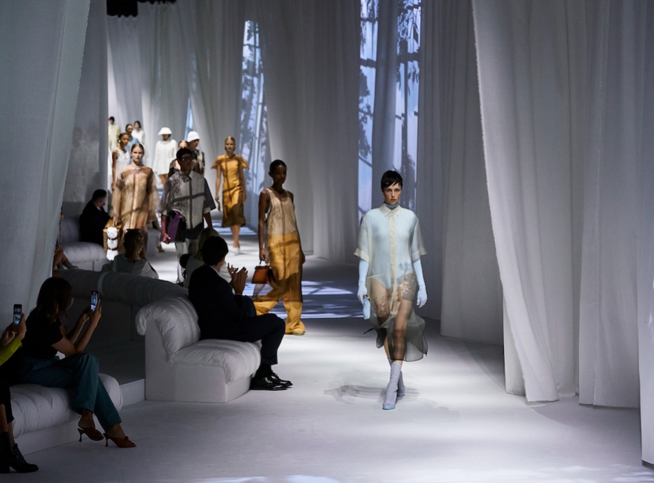 Fendi одним из первых на Неделе моды в Милане провел офлайн-показ с гостями. Белоснежное пространство, мягкие диваны, социальная дистанция между гостями — как рапортует из Милана наш главный редактор Катя Дарма, возникало ощущение больничной стерильности, при этом нисколько не отталкивающей. Сама коллекция Сильвии Вентурини Фенди была такой же чистой: плавные линии шелковых платьев, нежные костюмы с брюками чуть ниже колена, уютный, но при этом не расхлябанный трикотаж, воротники жакетов, которые напоминают о моде 1950-х, — чувственные, но строгие. Продуманная минималистичность вещей заставляет вспомнить предсказания о том, что после пандемии дизайнеры не будут ничего усложнять — нам и так хватает трудностей. В коллекции только один яркий цвет — бесскомпромиссный красный. Палитра остальных вещей включает белый, молочный, оттенки коричневого и нежно-голубой, напоминающий о форме медицинских работников.