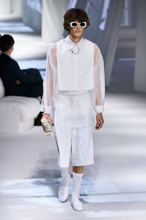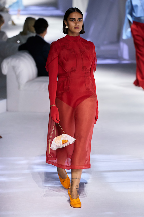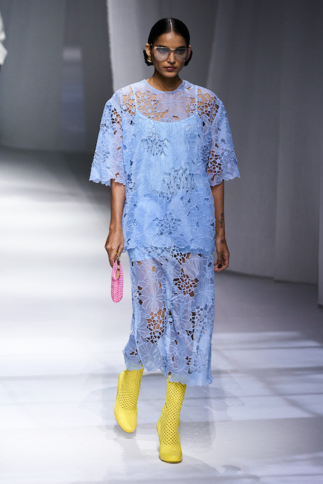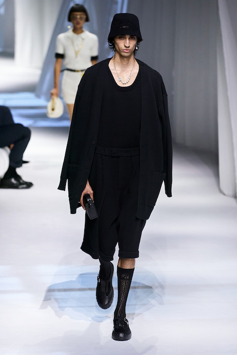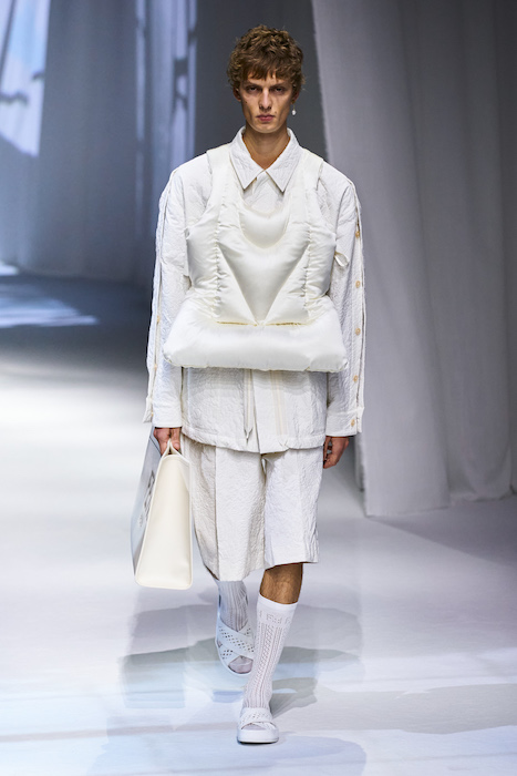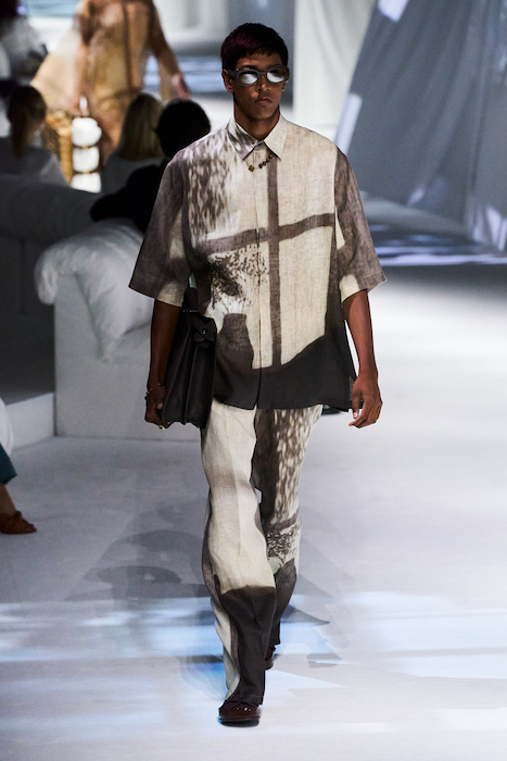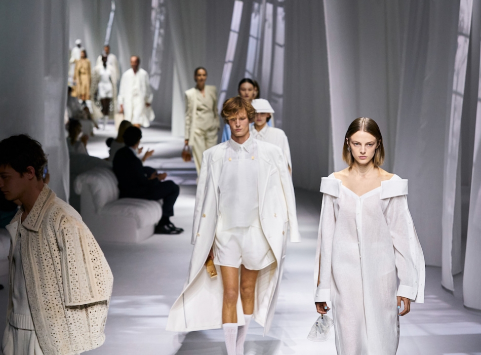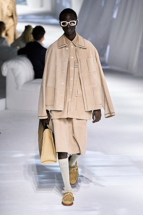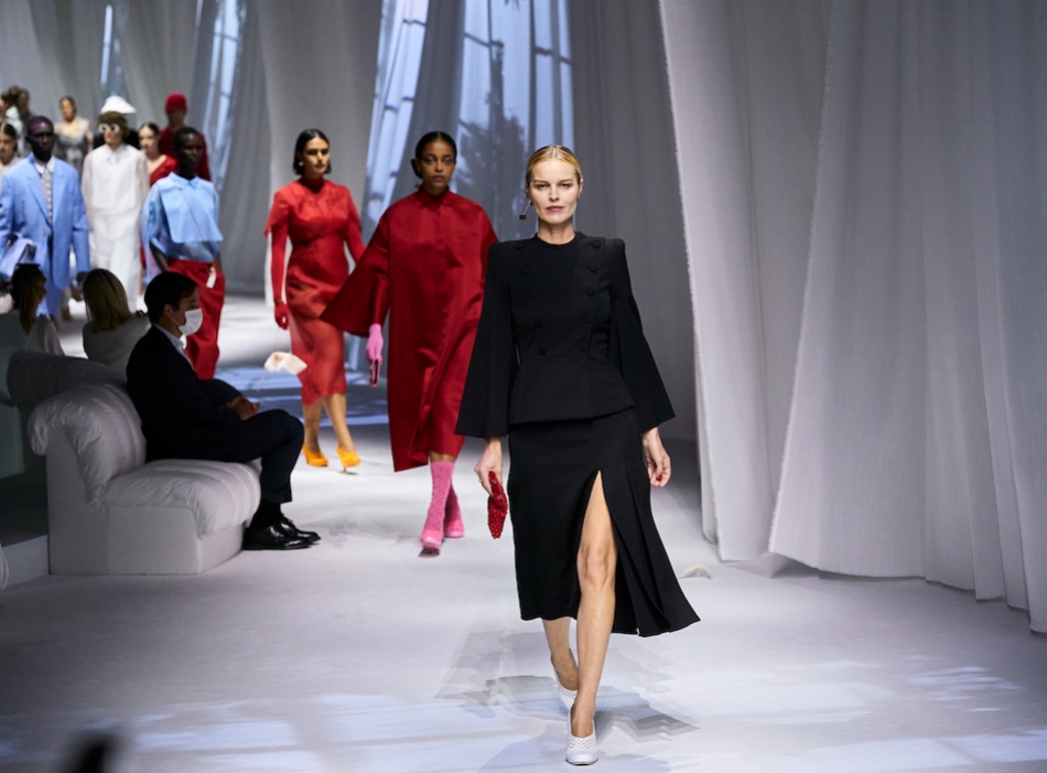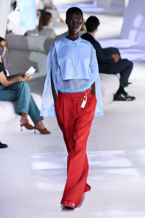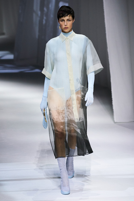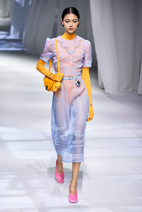 Fendi одним из первых на Неделе моды в Милане провел офлайн-показ с гостями. Белоснежное пространство, мягкие диваны, социальная дистанция между гостями — как рапортует из Милана наш главный редактор Катя Дарма, возникало ощущение больничной стерильности, при этом нисколько не отталкивающей. Сама коллекция Сильвии Вентурини Фенди была такой же чистой: плавные линии шелковых платьев, нежные костюмы с брюками чуть ниже колена, уютный, но при этом не расхлябанный трикотаж, воротники жакетов, которые напоминают о моде 1950-х, — чувственные, но строгие. Продуманная минималистичность вещей заставляет вспомнить предсказания о том, что после пандемии дизайнеры не будут ничего усложнять — нам и так хватает трудностей. В коллекции только один яркий цвет — бесскомпромиссный красный. Палитра остальных вещей включает белый, молочный, оттенки коричневого и нежно-голубой, напоминающий о форме медицинских работников.