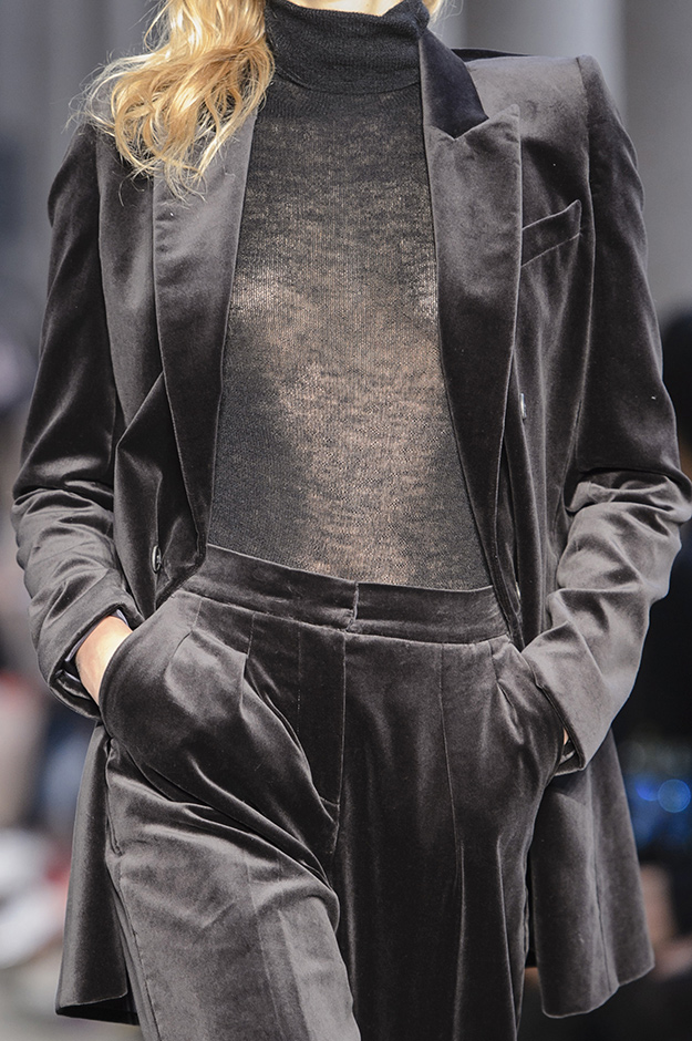 Основные элементы: объемные длинные пальто, свободные брюки, брючные костюмы, худи, полупрозрачные водолазки