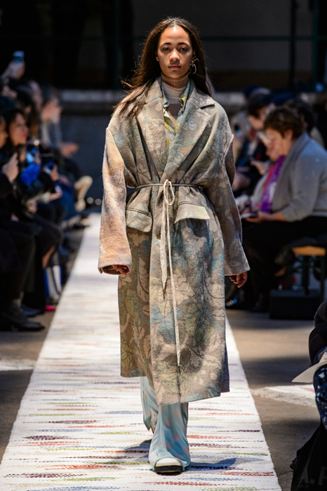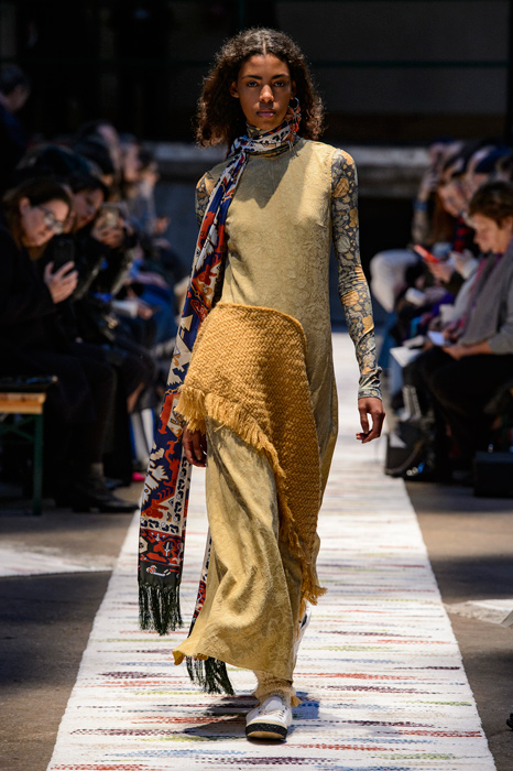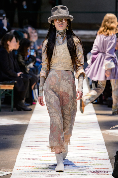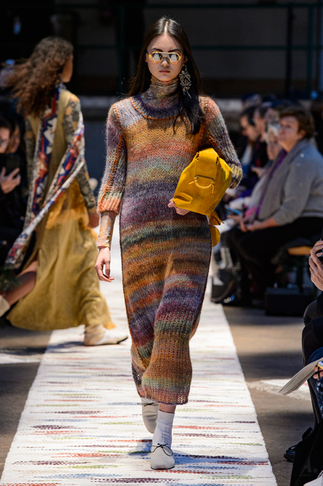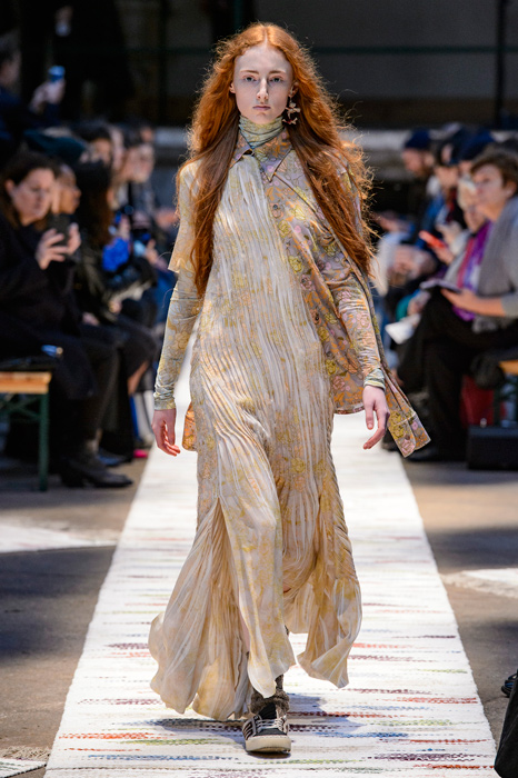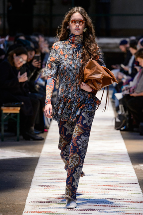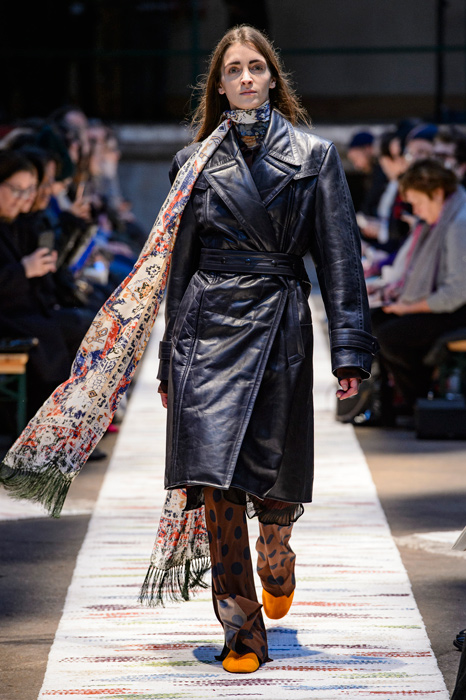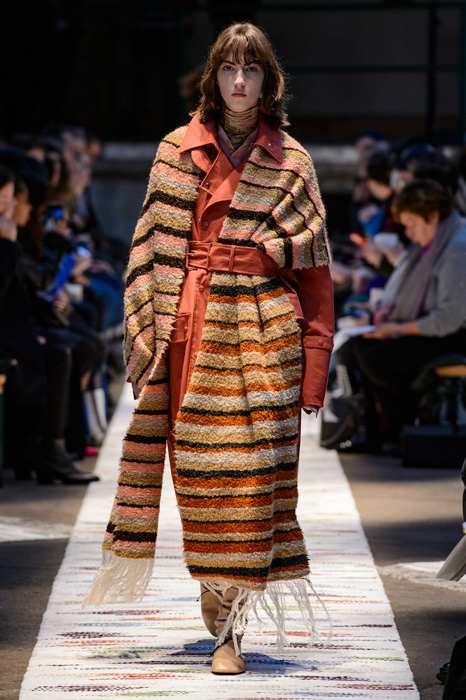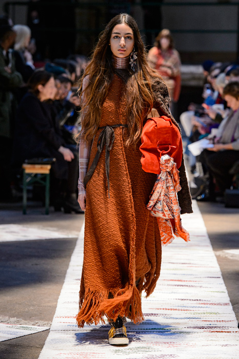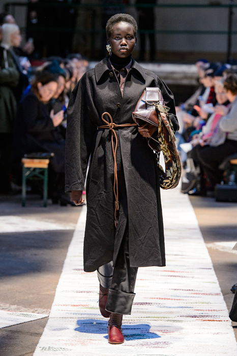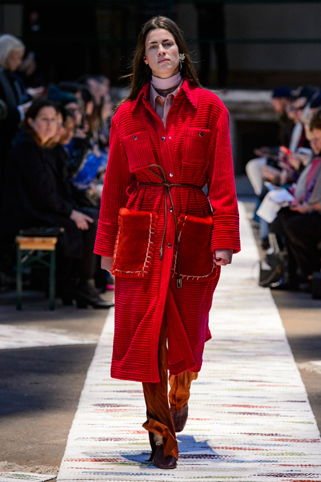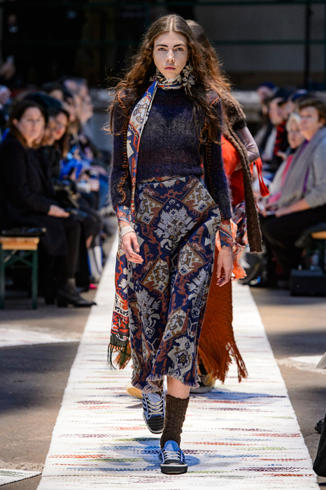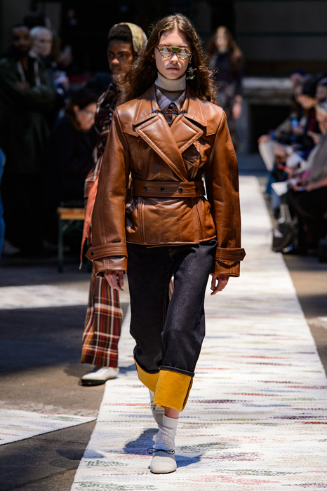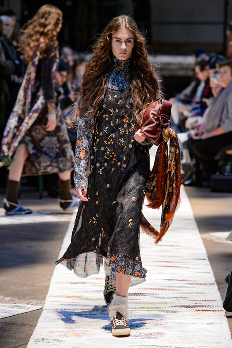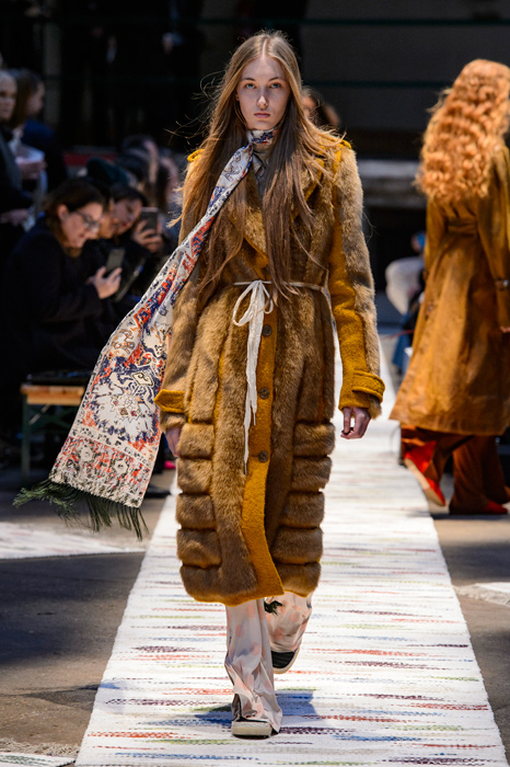 Новая коллекция, как всегда эклектично, но при этом гармонично стилизованная, напоминала о романтичном Диком Западе Джима Джармуша из фильма «Мертвец»: землистые цвета, шубы, выполненные будто из необработанного меха (в данном случае мех был искусственным), пальто-пончо и даже шляпа — почти как у Джонни Деппа. За что Acne Studios так любят в Северной Европе и России, так это за верхнюю одежду. Шведский бренд вот уже несколько сезонов подряд создает носибельные и стильные куртки, плащи и пальто, из-за которых иногда даже хочется, чтобы прохлада пришла поскорее.