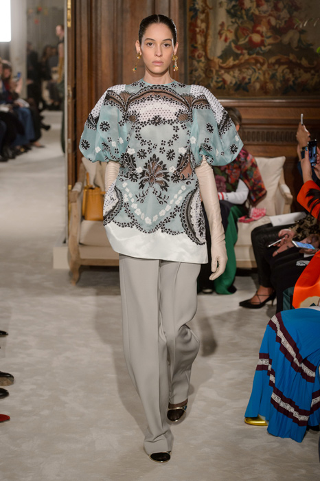 Кутюрное шоу Valentino удивительным образом выделилось из череды коллекций, которые были представлены на этой неделе. Вместо ставших традицией тяжеловесных платьев, изобилующих вышивкой и декором, Пьерпаоло Пиччоли предложил своим клиенткам альернативу — кутюрный образ, максимально приближенный к понятию casual, но от этого не теряющий своей уникальности. Большая часть образов — расслабленные: брюки свободного кроя, шелковые пальто и нарядные блузки, которые, кажется, можно представить и на красной дорожке, и на приеме у сюрреалистов (если дополнить образ шляпой из перьев), и на загородной итальянской вилле. Тем не менее без платьев не обошлось: здесь дизайнер и мастера ателье снова продемонстрировали, что для них нет ничего невозможного. Примечательно, что Пьерпаоло Пиччоли назвал каждый образ из новой коллекции в честь мастера, который участвовал в его создании.