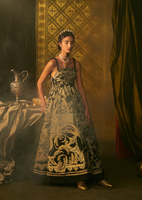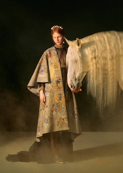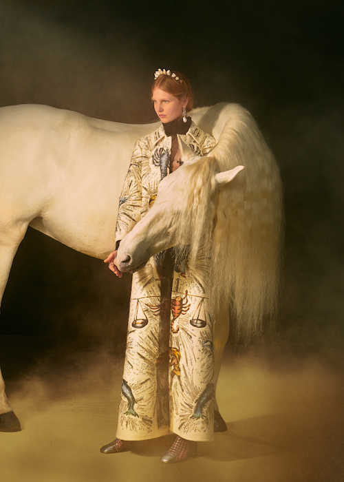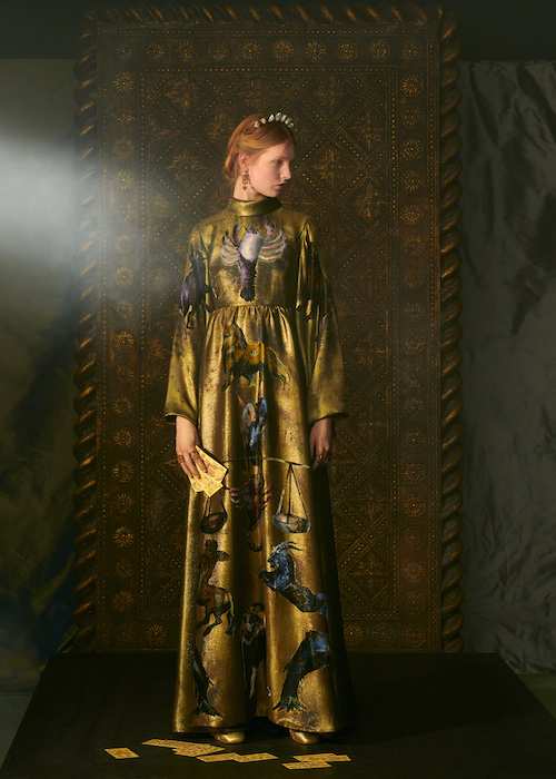 Как и в случае с прошлой кутюрной коллекцией, фильм-презентацию Dior доверили снимать режиссеру Маттео Гарроне. В нем главная героиня путешествует по старому замку, встречая на своем пути ожившие карты Таро. Каждый образ в фильме также посвящается одному из арканов: луна, солнце, дьявол, императрица, колесо фортуны, правосудие и смерть. Длинное пальто вручную расшито знаками зодиака, на корсете платьев — черепа и карта, символизирующая мир. Для нескольких вещей бренд использовал иллюстрации итальянского художника Пьетро Руффо. Открывающее коллекцию платье сделано в технике «lacca povera», которую в XVIII веке применяли для декора мебели: покрывали предметы лаком и создавали на них гравюры.