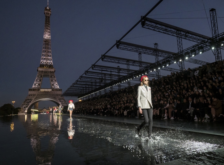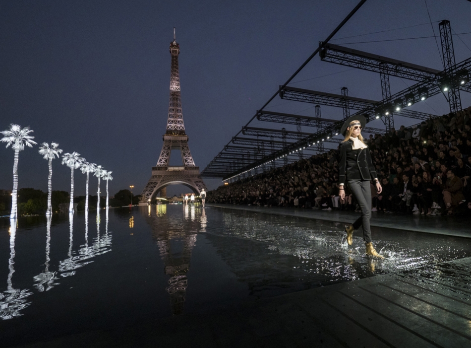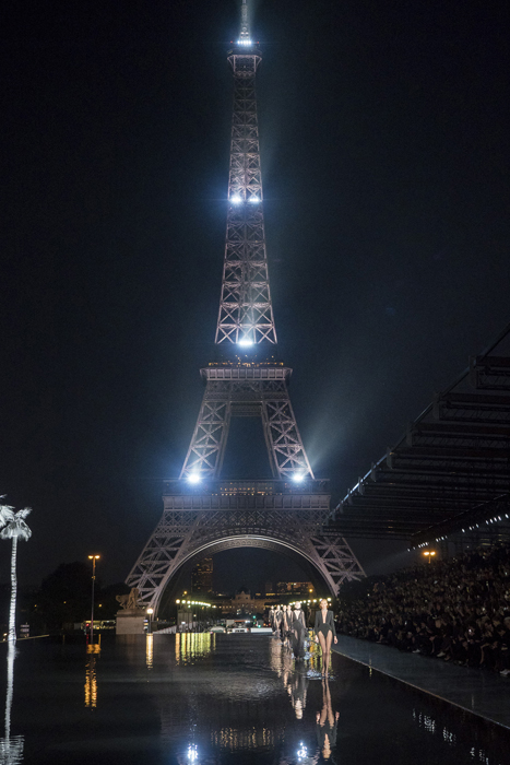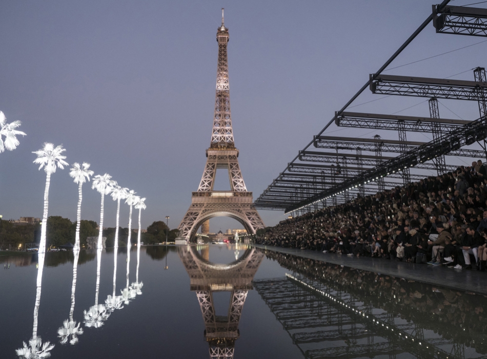 Кинематографичный показ на фоне Эйфелевой башни и пальм