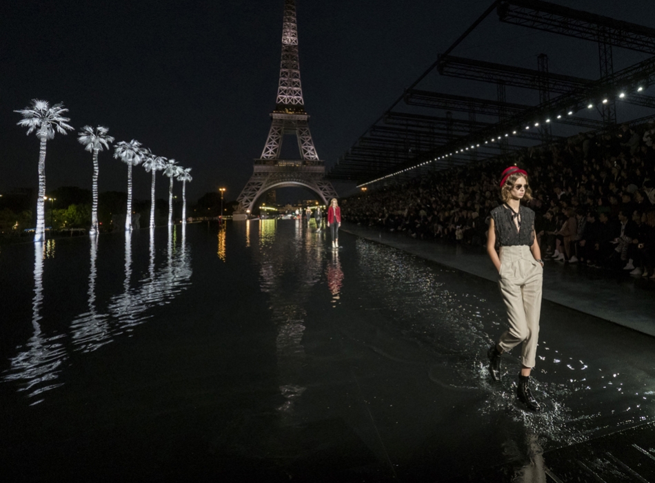 Кинематографичный показ на фоне Эйфелевой башни и пальм
