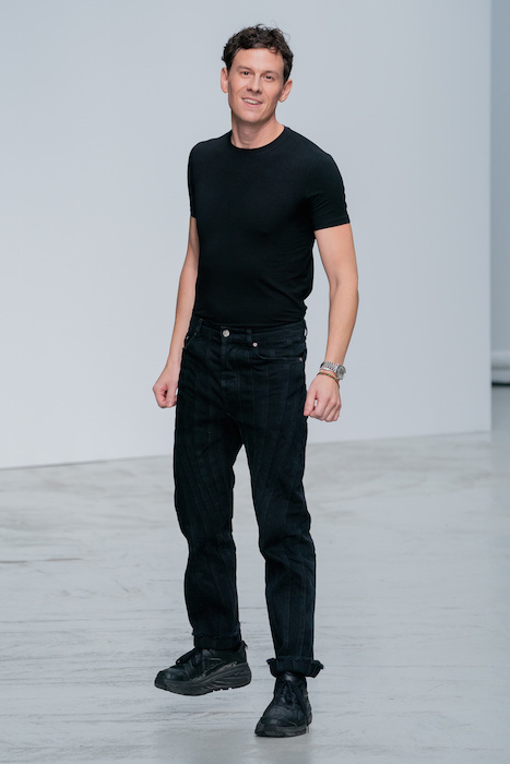 В Париже прошел показ весенне-летней коллекции Mugler — напомним, сейчас марку возглавляет Кейси Кэдуолладер. Очевидно, что новый дизайнер работает с архивами: глядя на яркие шелковые рубашки, деконструированные жакеты, тренчкоты и платья, узнается мюглеровская формула — широкие плечи, узкая талия и преувеличенный изгиб в бедрах. В линию аксессуаров и обуви вошли длинные, до пояса, серьги, длинные перчатки и сандалии с очень острым носом, которые были надеты в том числе и на мужчинах.
