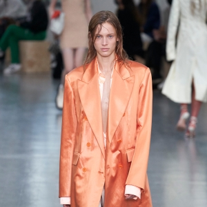 Последние два года марка Trussardi активно сотрудничает с разными творческими людьми. В проекте Archive + Now с помощью художников и молодых дизайнеров бренд освежает свои архивы — за последний год Trussardi поработал с дизайнерами Medea Джулией и Камиллой Вентурини и дуэтом анонимных художников Cheсking Invoices. Для коллекции весна-лето 2021 Trussardi объединился с основателями марки Sinha-Stanic, дизайнерами Фионой Синха и Александром Станичем, которые раньше работали в Alexander McQueen. Результатом сотрудничества стали джинсовые изделия, нейлоновые плащи, уютные платья из льняного трикотажа и из рубашечной ткани. В коллекцию также вошло множество кожаных вещей: лакированные плащи, рубашки, брюки, оверсайз-пиджаки. В линии аксессуаров — кожаные XXL-шоперы и небольшие пухлые клатчи.