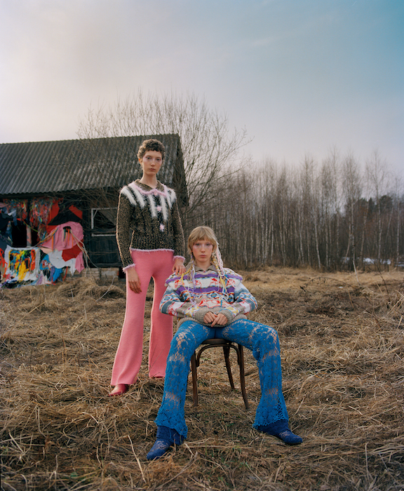 Основатель марки Vereja Игорь Андреев родился и вырос в деревне близ подмосковного города Вереи (ударение на последний слог). Там же в школьном кружке он научился вязать. Свой бренд вязаных вещей Игорь построил на этих теплых воспоминаниях из детства. Вот и лукбук новой коллекции снимали рядом с деревней Устье, где дизайнер прожил до 14 лет.