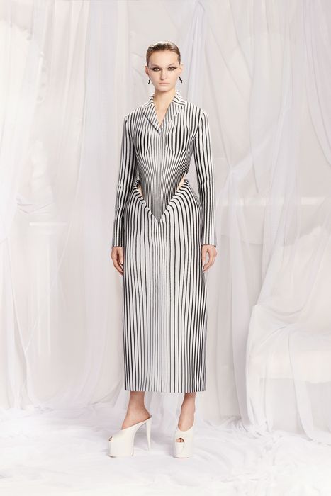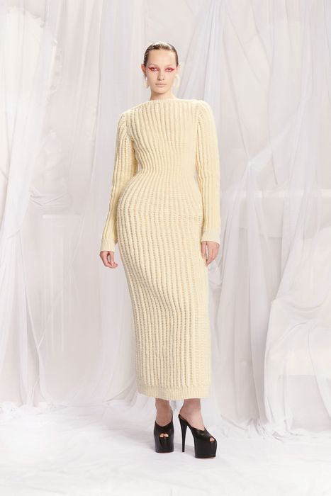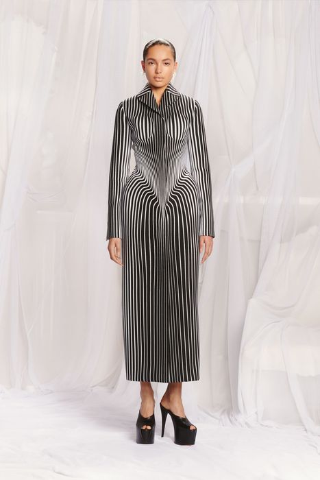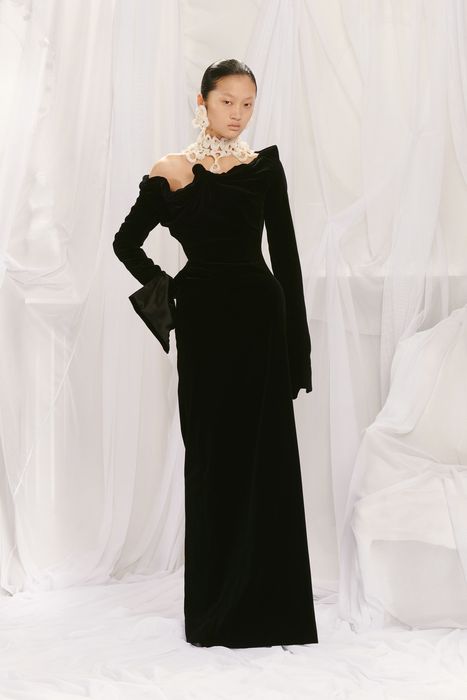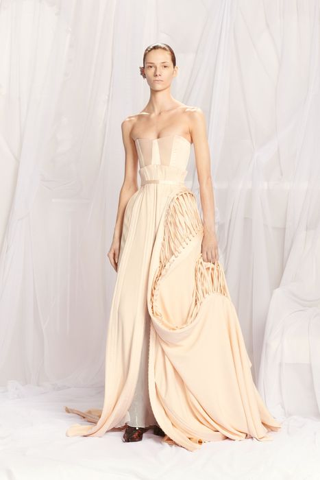 Два года назад Жан-Поль Готье отметил 50-летие своей марки и «ушел на пенсию» — теперь работу над новыми коллекциями он доверяет приглашенным дизайнерам. В прошлом сезоне это была Читосе Абе из Sacai, а теперь честь выпала Гленну Мартенсу, дизайнеру Y/Project и с недавнего времени креативному директору Diesel. Мартенс поработал с мегахитами Готье разных лет: нежные шифоновые платья отсылают к образам коллекции 1996 года, ленточные корсеты — к кутюру Готье 2001-го. Отточенный силуэт песочных часов, платья в технике макраме или из тяжелого красного бархата, принты trompe l'oeil и с кораллами — в новой коллекции во всех этих знаковых для Jean Paul Gaultier элементах узнается почерк Гленна Мартенса. Выдают сложные конструкции и вытянутые силуэты: большие закрученные юбки и воротники, высокая пройма боди, дополнительный искусственный объем на бедрах и рваные вырезы.