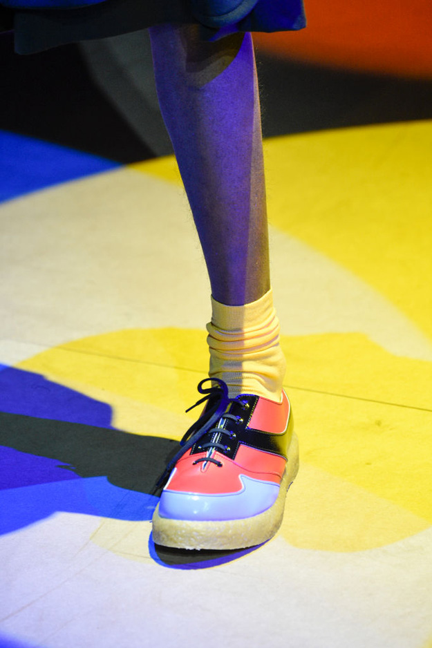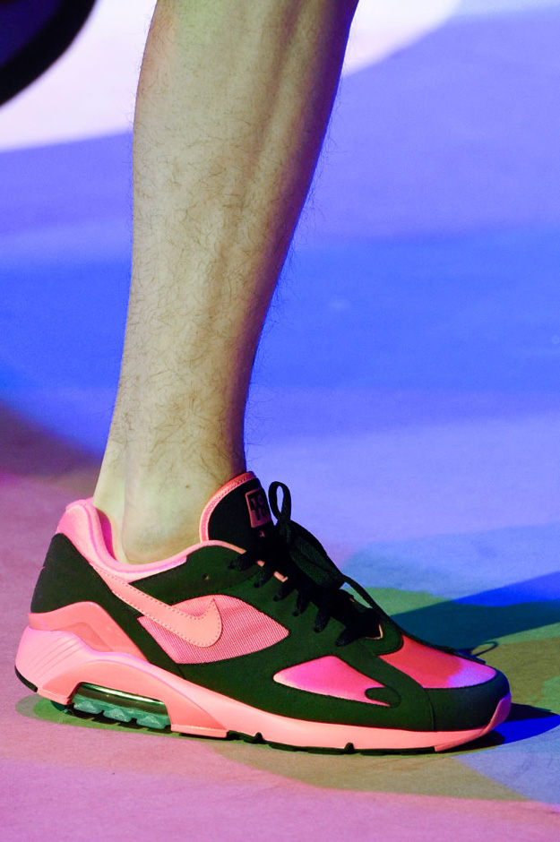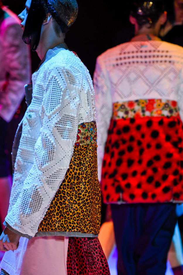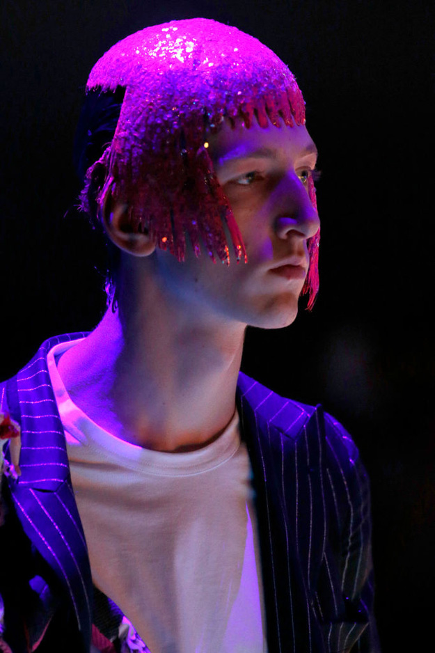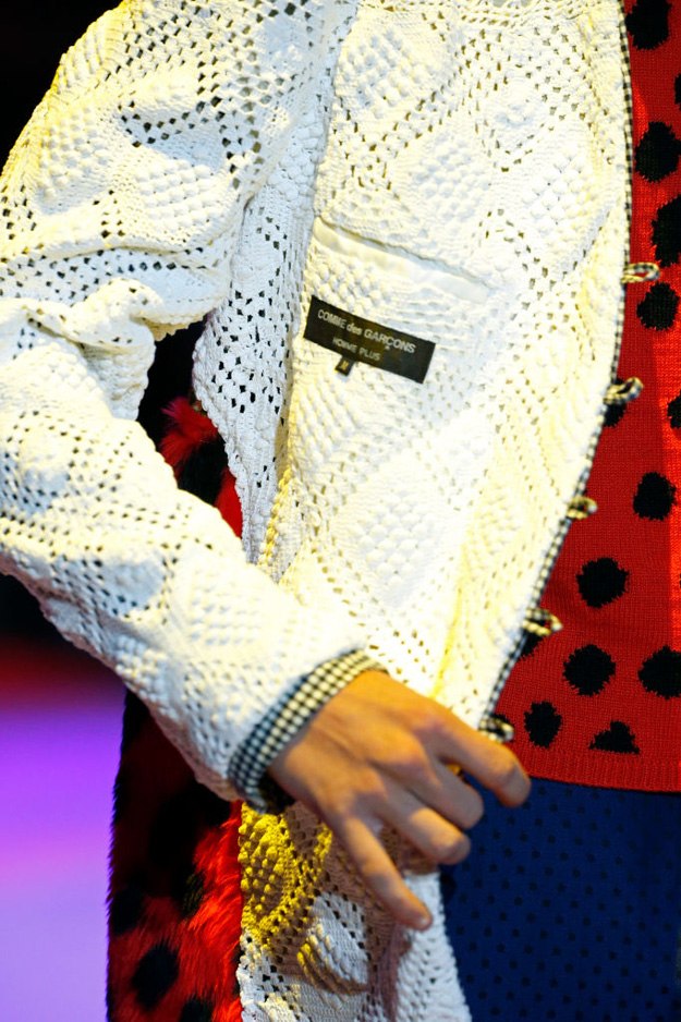 На последнем показе мужской линии Comme des Garçons Рей Кавакубо превратила подиум в танцевальную площадку. Диско-атмосфера в показе прослеживалась и в самой коллекции, в которой главная роль была отведена эклектике. Мешковатые шорты из глиттера, блестящие пиджаки, анималистичные и цветочные принты и Nike Air Max стали униформой для вечеринки, и сама Рей Кавакубо после показа спросила у публики, почему никто не присоединился к показу. В очередной раз, когда модный мир погружается в политический дискурс, Кавакубо все делает по-своему и предлагает немного повеселиться.