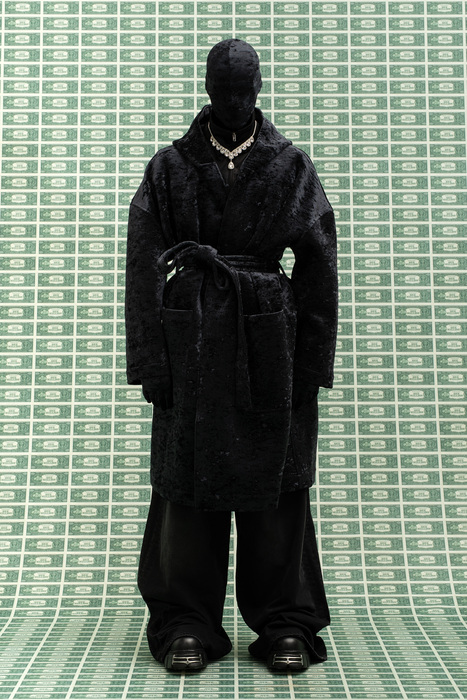 «Роскошь больше не определяется материалами и мастерством. Конфиденциальность — вот настоящая роскошь наших дней», — говорится в заметках к новой коллекции Vetements. Эту идею отражают комбинезоны c масками, полностью закрывающие тело — Гурам Гвасалия сравнивает их с VPN. Также в коллекции полно вещей-обманок: есть гибриды тренчкота и пуховика, велюровые костюмы из нулевых превращаются в вечерние комплекты, а бархатные халаты — в пальто. Длинные юбки можно носить как платья, широкие джинсы станут шортами, если отстегнуть низ, а у верхней одежды съемная подстежка, которую в зависимости от погоды марка предлагает носить отдельно.