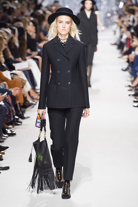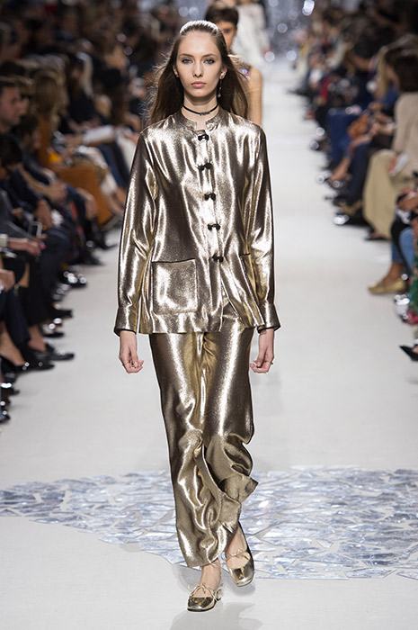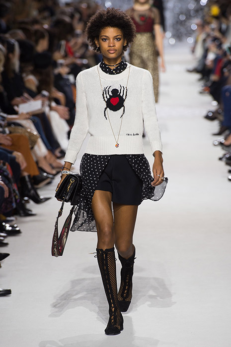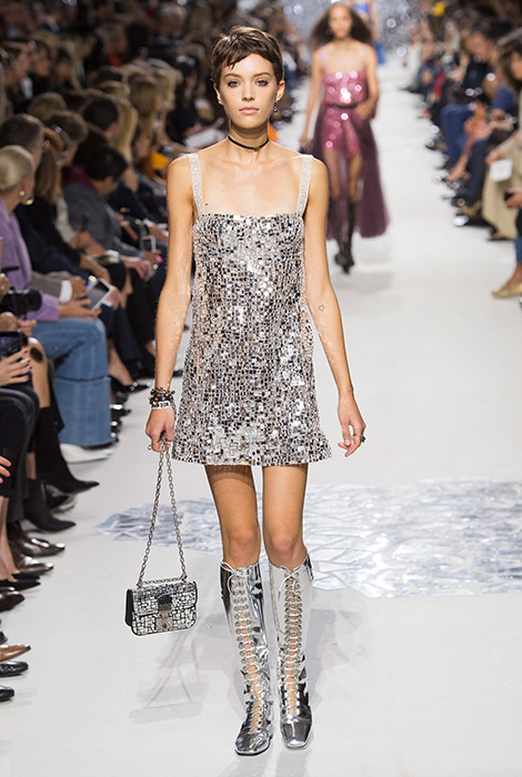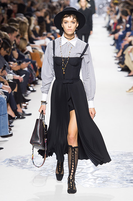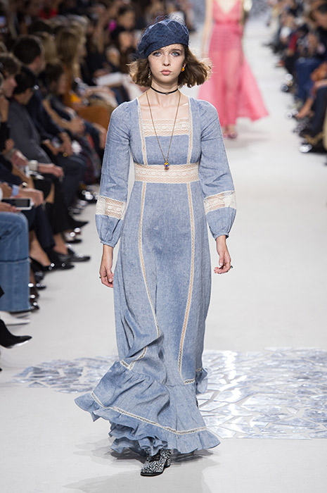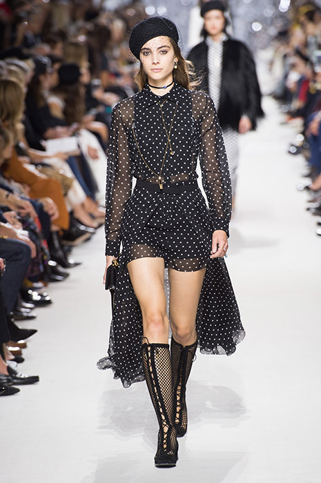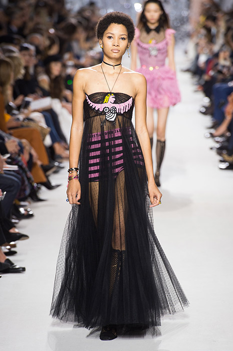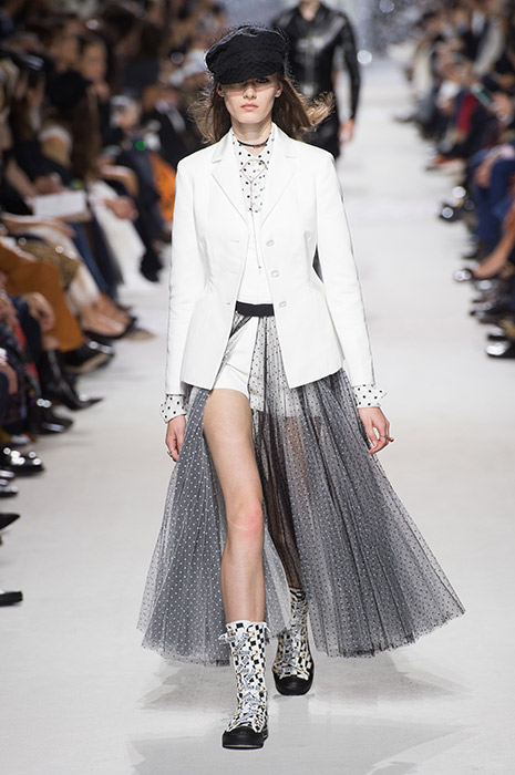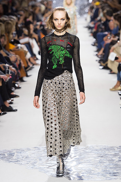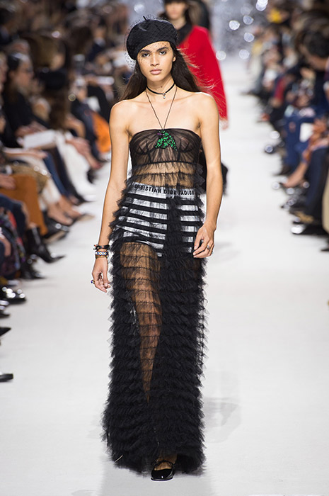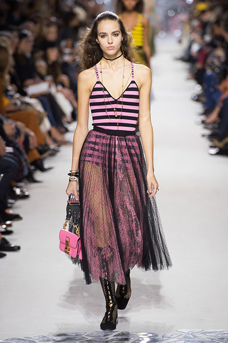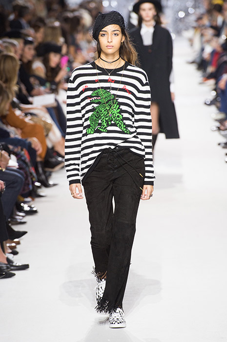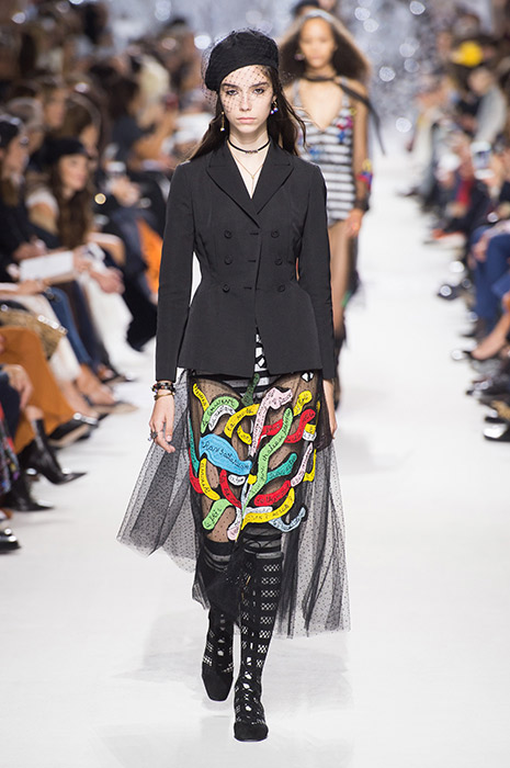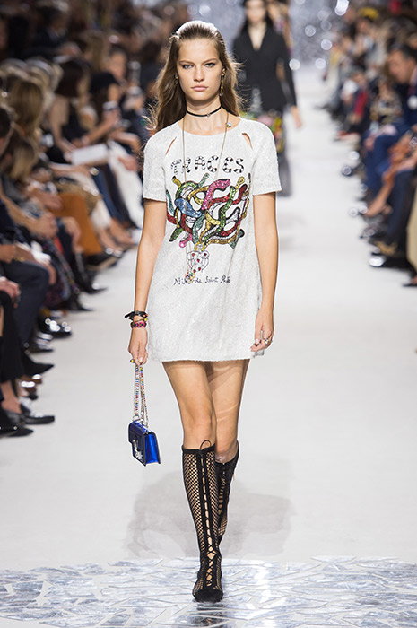 Показ новой весенне-летней коллекции Christian Dior открыла Саша Пивоварова в символичном для французского стиля топе mariniere с надписью «Why have there been no great woman artists?» — этот вопрос в свое время задавала Линда Нохлин, культовый историк моды, а главной инспирацией для коллекции стала художница Ники де Сен-Фалль. Очевидно, что Мария Грация Кьюри решила дальше развивать тему популярного феминизма и искусства, с которой она пришла на пост креативного директора Dior. Впрочем, коллекция была более чем далека от французской тематики — береты и деним парижской интеллектуалки на баррикадах снова появились на подиуме, но в небольших дозах.