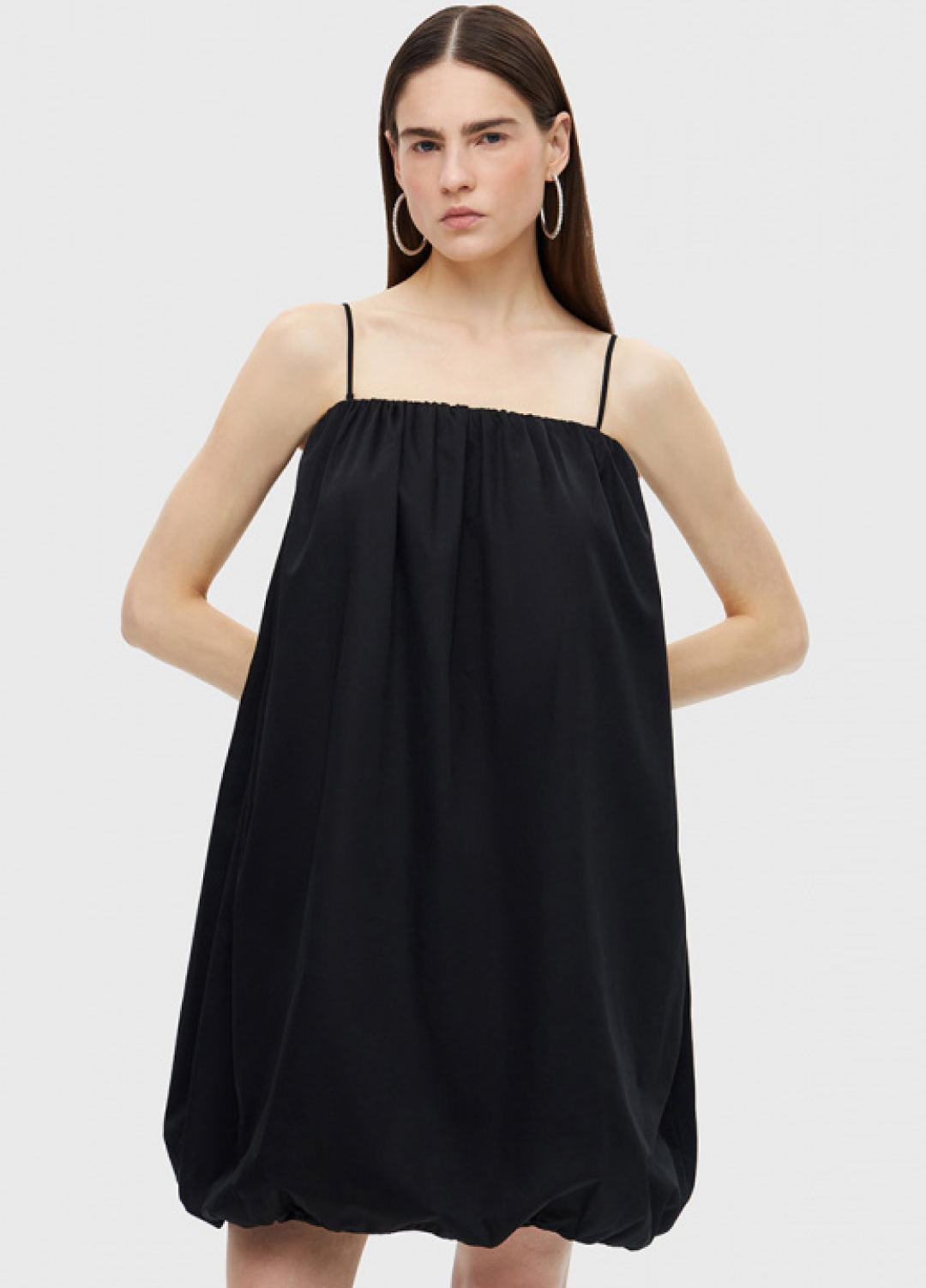 Если вас укачивает от блесток и перьев в новогодних коллекциях — вам к Studio 29. Это лаконичное платье с юбкой-баллоном еще и многофункционально: его можно носить и без бретелек — как пример, поверх белой водолазки или рубашки.