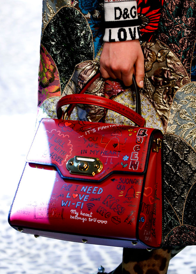 Аксессуары: короны, массивные подвески, клатчи и сумки с вышивкой, шапки с лого D&G