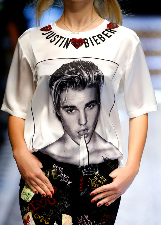 Основные элементы: разные фасоны платьев, расшитые камнями жакеты, костюмы, шубы, футболки с Джастином Бибером, пуховые пальто, вышивка