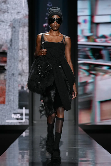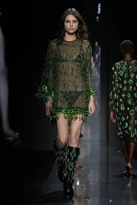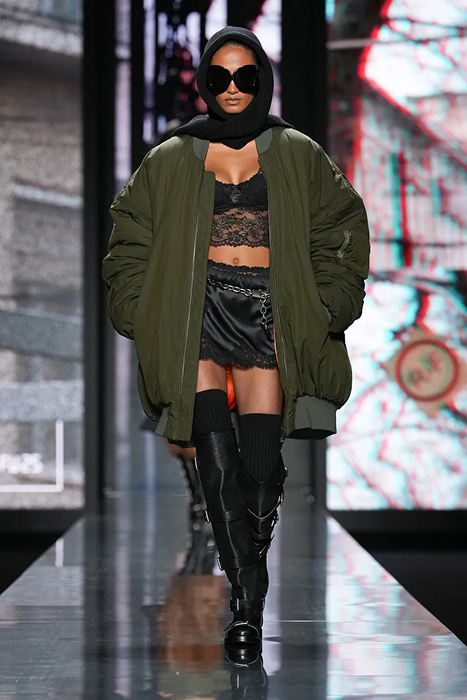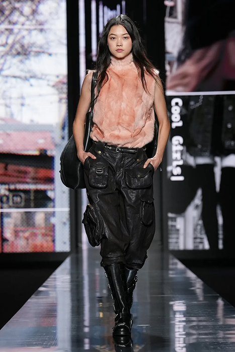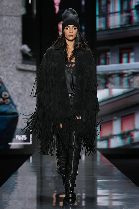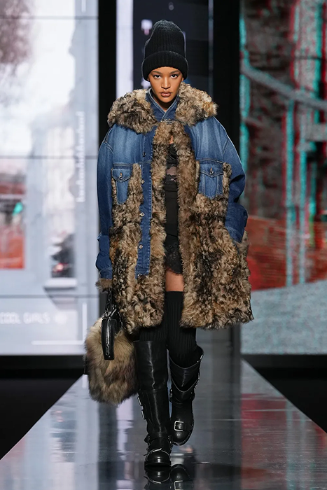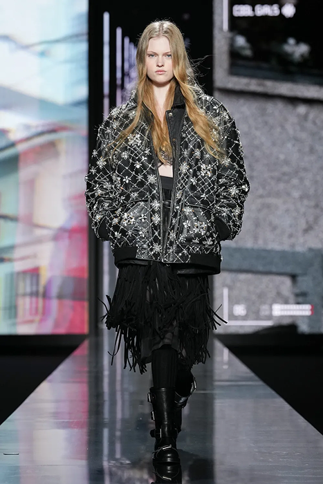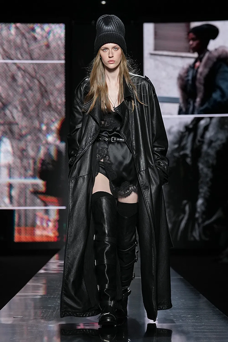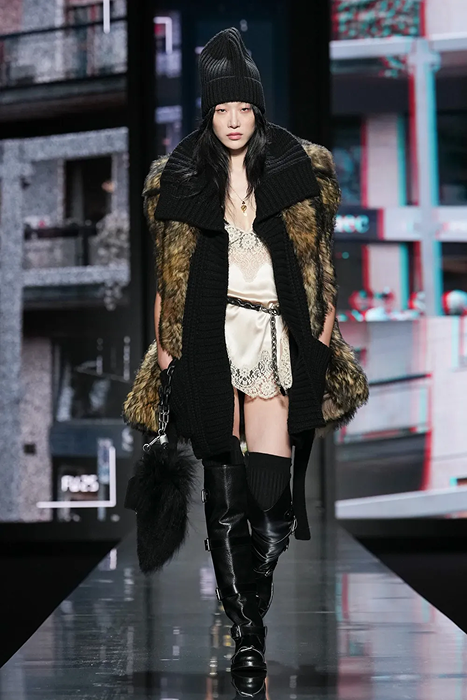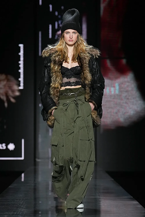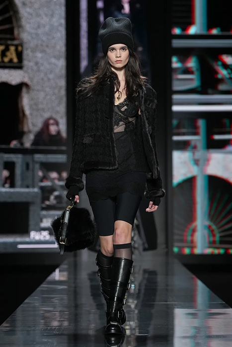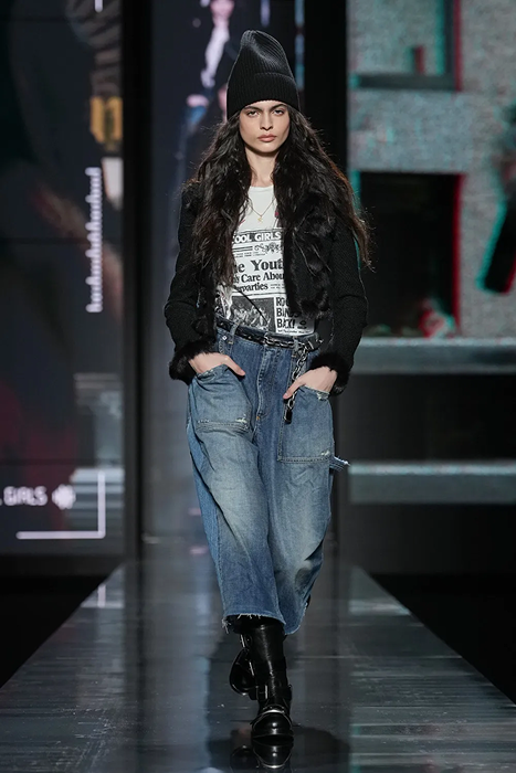 Итак, кто такая cool girl, по версии Доменико и Стефано? Отвечаем. Она носит парки с мехом (материал триумфально закрепил за собой звание главного в Милане) и выбирает бутылочно-зеленый; ей нравятся винтажные футболки и кружевные топы, карго, меховые миди и атласные мини-юбки. Она с удовольствием миксует «пижамные» штаны, расшитые крупными брошами, с ушанкой. В ее гардеробе мирно сосуществуют друг с другом «драгоценный» кожаный жилет, худи, «леопард», деним (также увенчанный стразами или декорированный мехом) и с десяток платьев — из сетки, кружева или полностью инкрустированных всем самым блестящим, что нашлось в шкатулке с украшениями. Они, к слову, появились даже на резиновых сапогах.