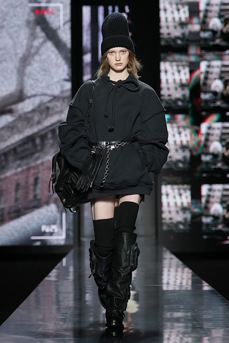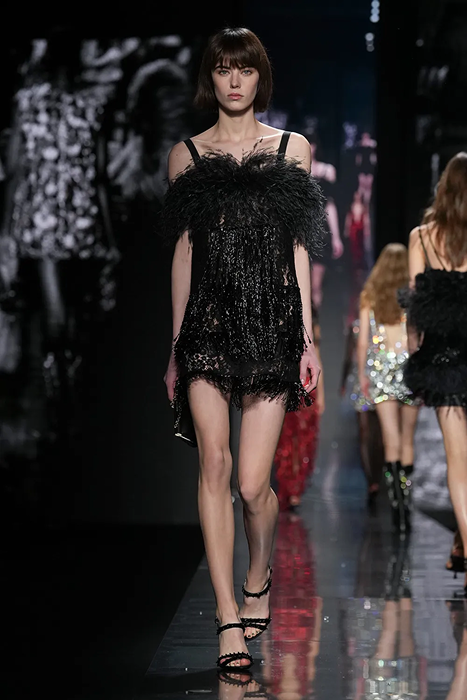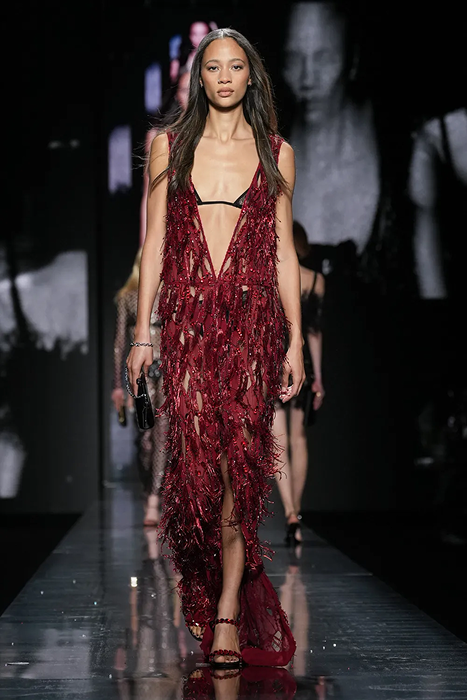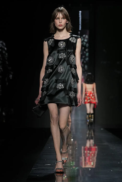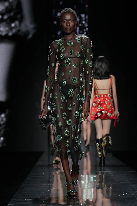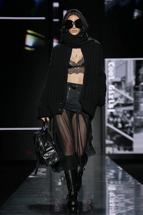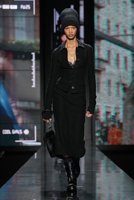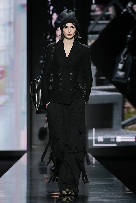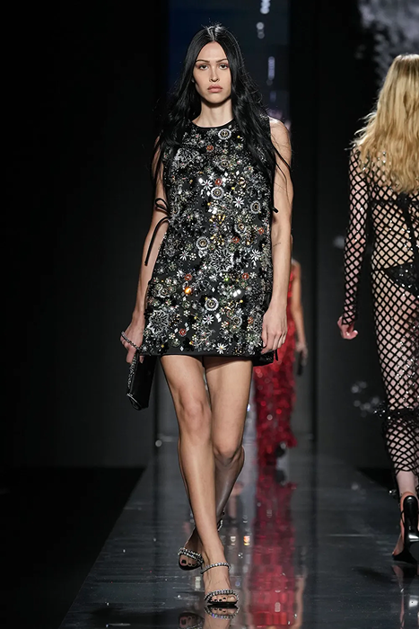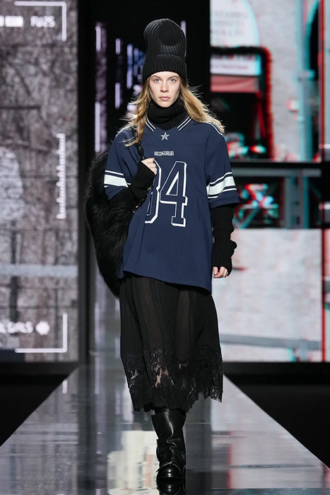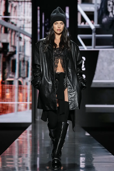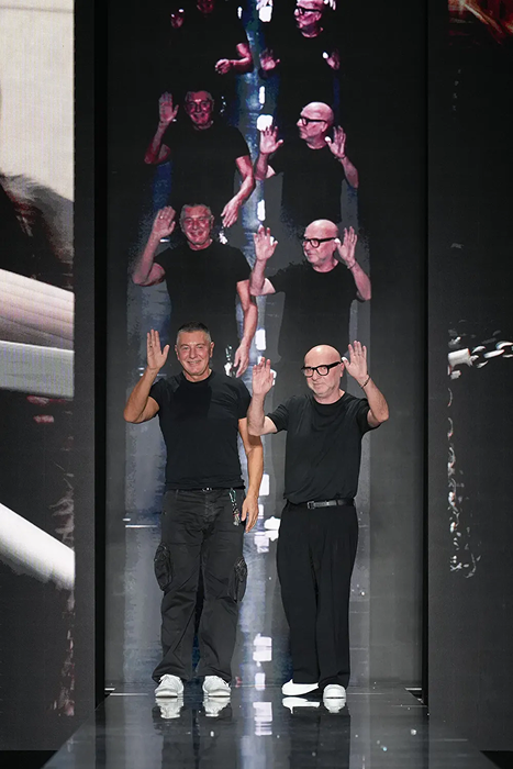 «Мы полностью изменили настроение, — объяснил Габбана, — и черпали вдохновение в Виттории Черетти, Ирине Шейк, Моне Тугаард. В том, как они одеваются в реальной жизни, на улице. Это очень спонтанно». Примерно так же, как на улице оказались модели в финале шоу, — чтобы устроить настоящую вечеринку для всех и каждого под диджей-сет Виктории Де Анджелис, бас-гитаристки Måneskin.