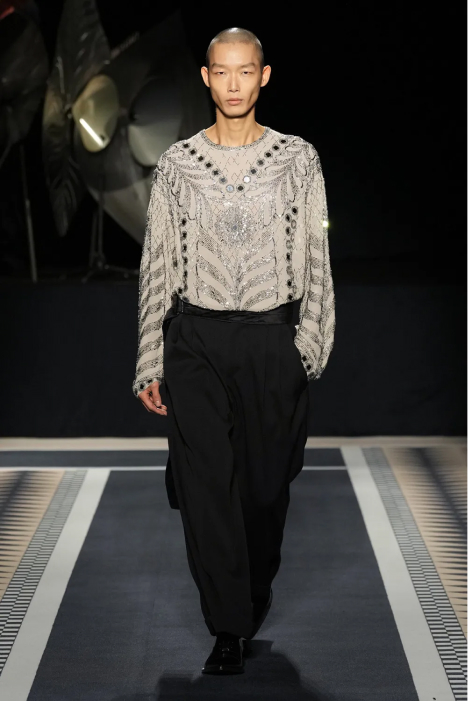 В качестве музыкального сопровождения для своего дебюта свежеиспеченный креативный директор выбрал кристал-баше — музыкальный инструмент, изобретенный в 1952 году братьями Бернаром и Франсуа Баше, который состоит из 56 стеклянных стержней с хроматической настройкой. На них можно играть, потирая их влажными кончиками пальцев. Это заставляет стержни вибрировать и передавать звук.