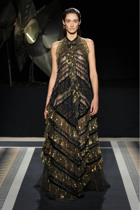 На мудборде дизайнера (ранее отвечавшего за кутюр в Balenciaga и работавшего с Nina Ricci) появились в том числе портреты польской художницы Тамары Лемпицкой, Гранта Вуда и сразу три работы Фра Беато Анджелико («Снятие с креста», «Коронование девы Марии» и «Благовещение»). Перед шоу Коппинг успел побеседовать с Vogue и признаться, что кросс-поколенческая история бренда ему интересна, поскольку при создании коллекции он вместе с командой смотрел на женщин и мужчин разных возрастов. «Я хочу воплотить таких персонажей, которые могли бы стать единым целым, но это не произойдет за пять минут, нужно время», — рассказал Питер зарубежным коллегам.