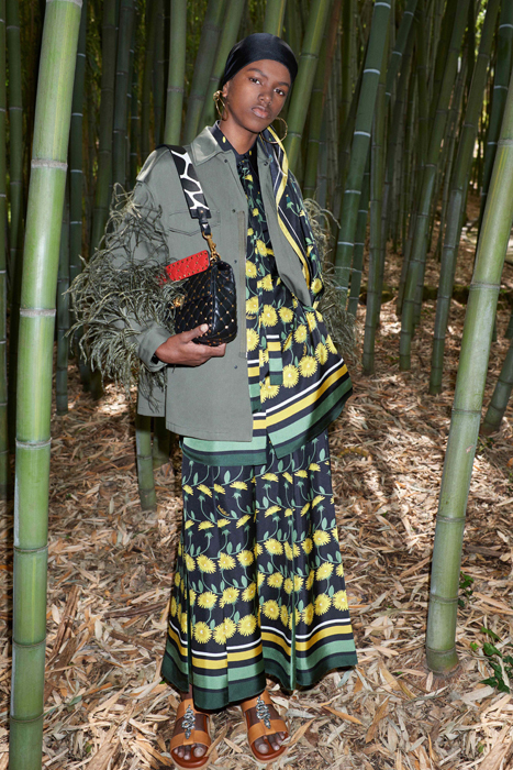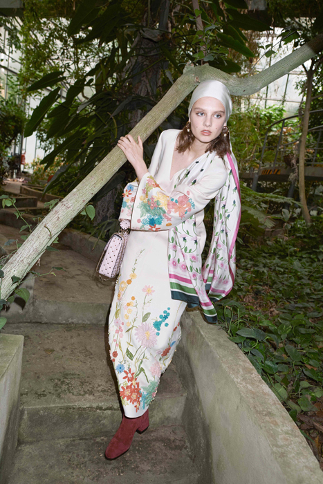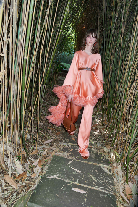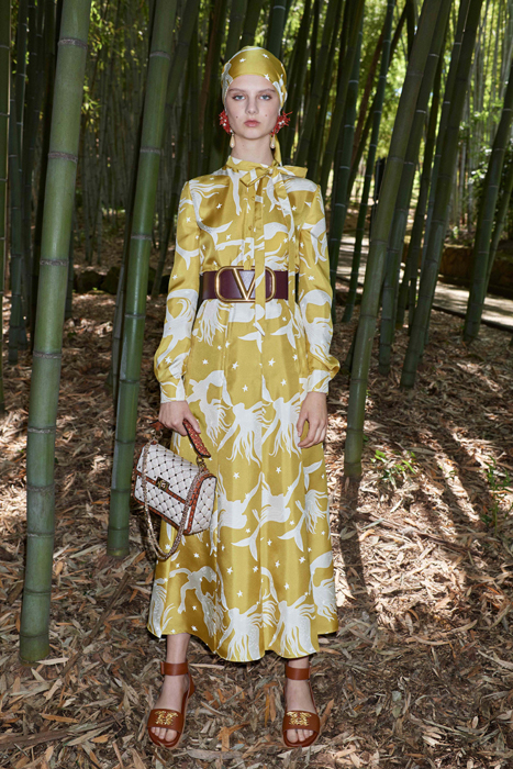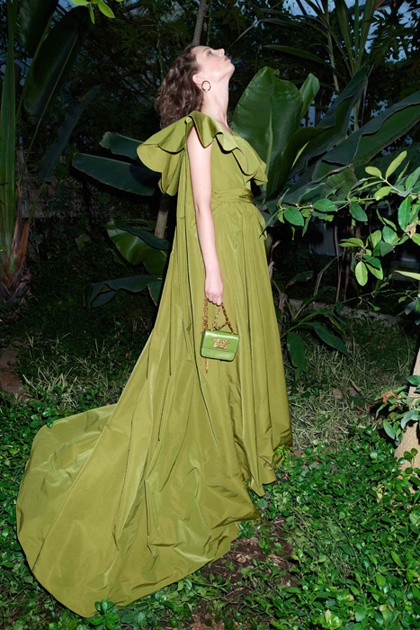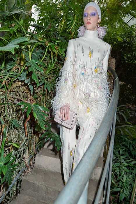 Новая круизная коллекция Пьерпаоло Пиччоли получилась ностальгической: правда, дизайнер работал не с архивными вещами марки, а с архивными снимками и рисунками. Например, со снимком Верушки в пижаме с оборками и бахромой — в прочтении Пиччоли к комплекту добавились еще и перья. Или с кадром Vogue 1968 года c Лорен Хаттон в белоснежном мини-платье с цветочными аппликациями — оно превратилось в платье-рубашку со сложной оборкой на рукавах. Лукбук коллекции снимали в римском ботаническом саду — дизайнер был впечатлен зеленым оазисом в центре города: такой же впечатляющий и освежающий эффект гарантируют вещи Valentino, если носить их в мегаполисе.