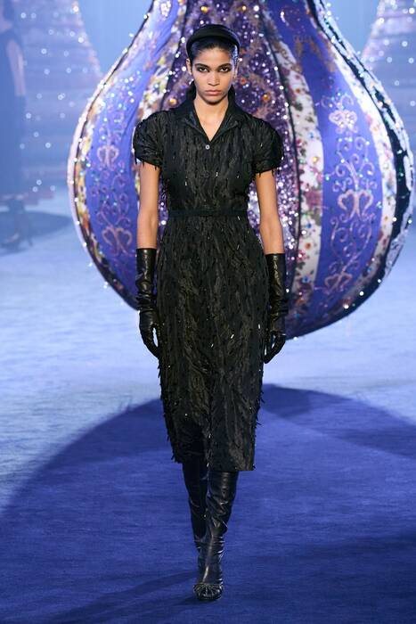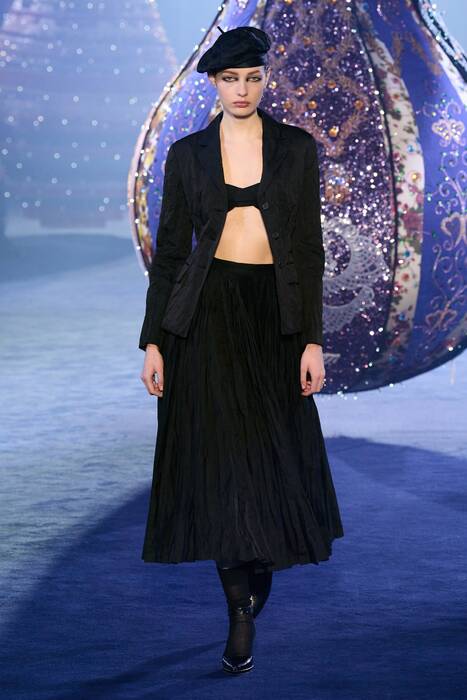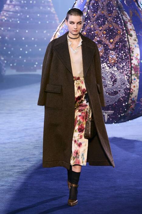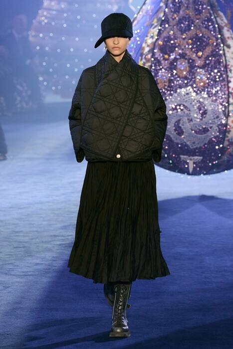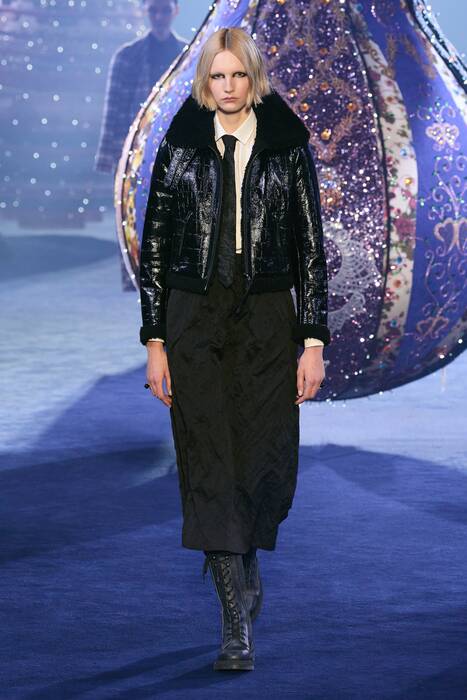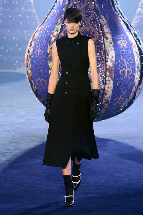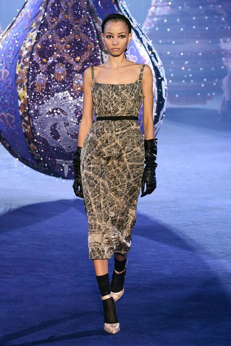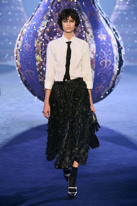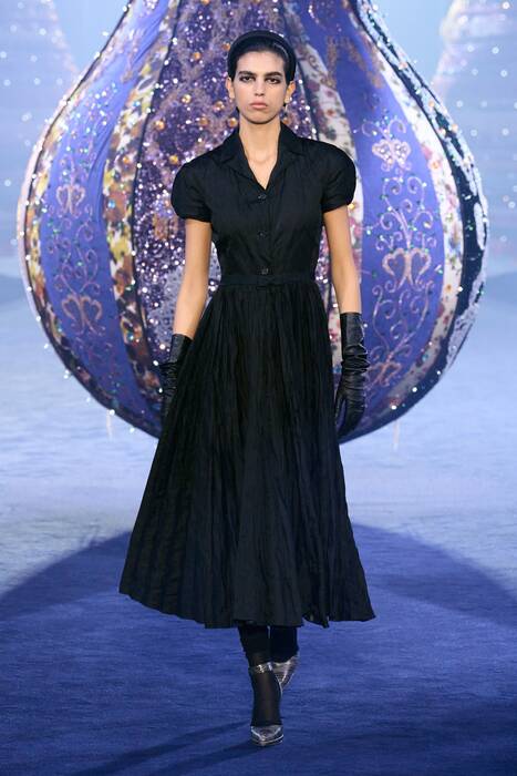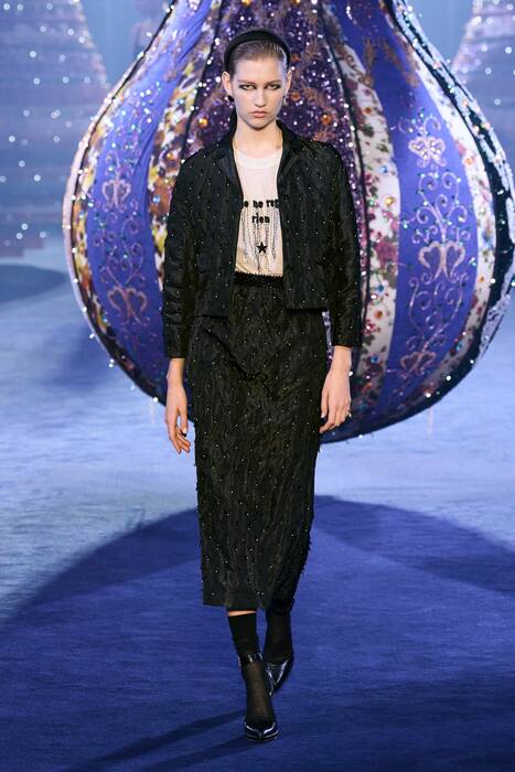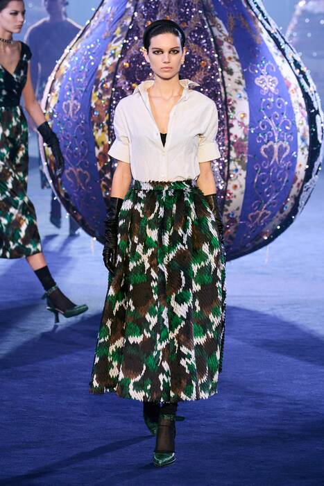 Ориентиром новой коллекции для Марии Грации Кьюри были 1950-е. Но не гламурные 1950-е по голливудским клише, а очень приземленные. «Реальность во Франции и Италии была моментом экзистенциализма. Европа была бедна», — так комментирует коллекцию дизайнер, проводя параллель с сегодняшним днем. Кьюри держала в уме трех женщин: Эдит Пиаф, клиентку дома Жюльетт Греко и Катрин Диор, сестру Кристиана Диора, которая была участницей Сопротивления и попала в концентрационный лагерь. В коллекцию вошли белые рубашки, заправленные в узкие юбки, костюмы в клетку, легкие платья, простые комбинации с принтом на основе карты Парижа и романтичные пальто, которые, по задумке автора, должны давать надежду. Финальная проходка была под «Non Je Ne Regrette Rien», все это выглядело особенно драматично на фоне огромных оберегов и амулетов, сделанных португальской художницей Джоаной Васконселос.