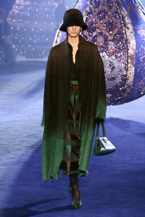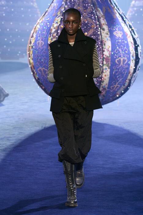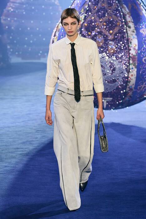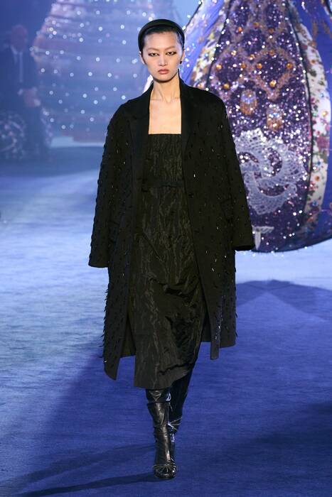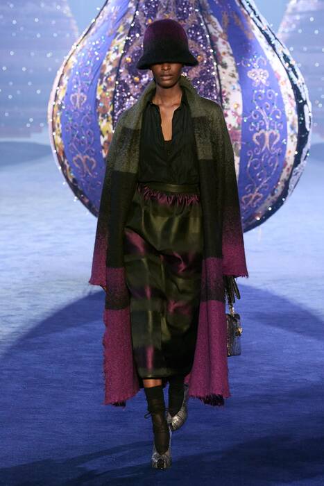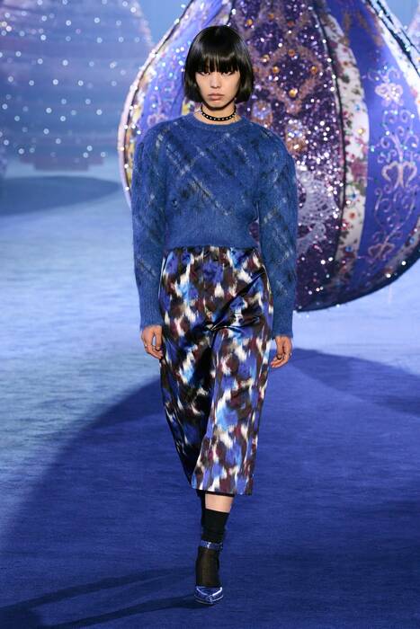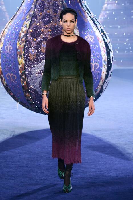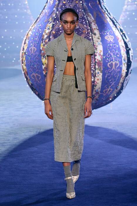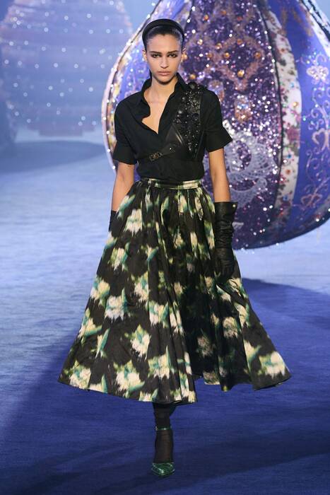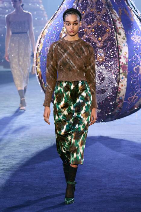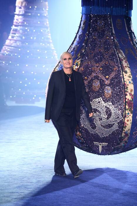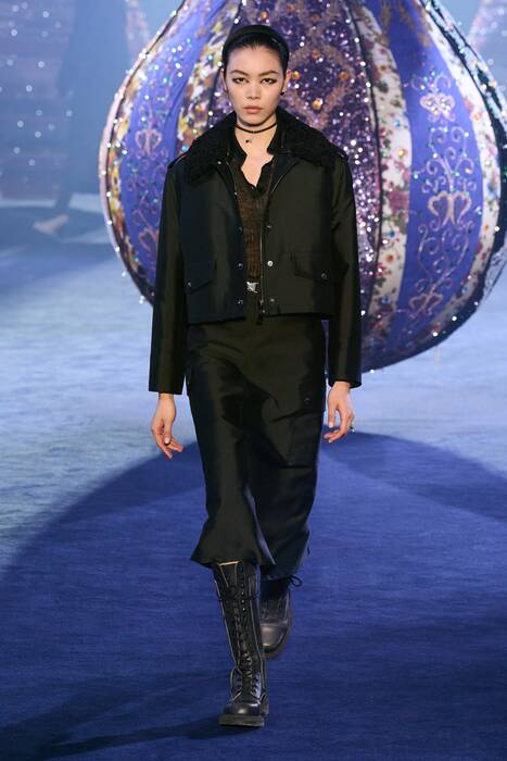 Ориентиром новой коллекции для Марии Грации Кьюри были 1950-е. Но не гламурные 1950-е по голливудским клише, а очень приземленные. «Реальность во Франции и Италии была моментом экзистенциализма. Европа была бедна», — так комментирует коллекцию дизайнер, проводя параллель с сегодняшним днем. Кьюри держала в уме трех женщин: Эдит Пиаф, клиентку дома Жюльетт Греко и Катрин Диор, сестру Кристиана Диора, которая была участницей Сопротивления и попала в концентрационный лагерь. В коллекцию вошли белые рубашки, заправленные в узкие юбки, костюмы в клетку, легкие платья, простые комбинации с принтом на основе карты Парижа и романтичные пальто, которые, по задумке автора, должны давать надежду. Финальная проходка была под «Non Je Ne Regrette Rien», все это выглядело особенно драматично на фоне огромных оберегов и амулетов, сделанных португальской художницей Джоаной Васконселос.