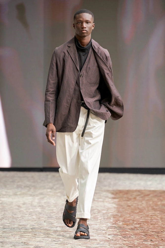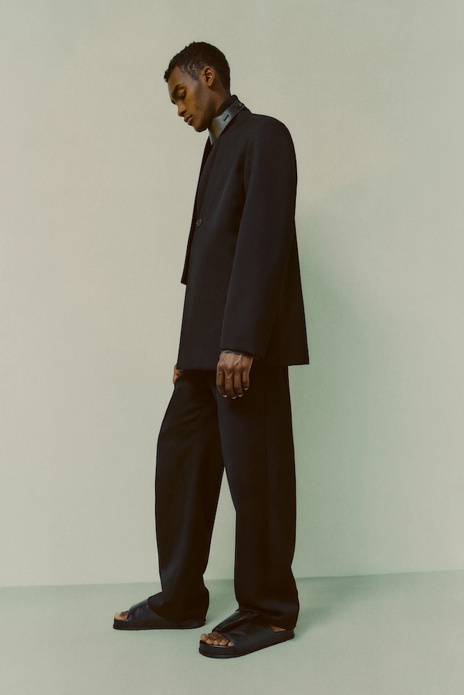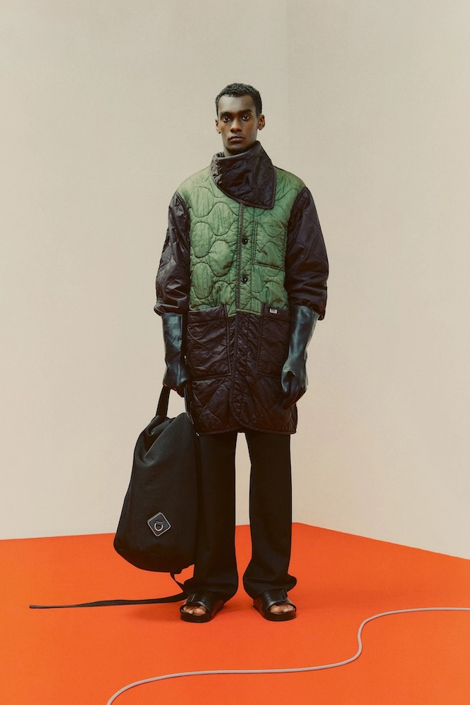 «Хороший дизайн — это как можно меньше дизайна. Меньше, но лучше», — в заметках к коллекции основатель OAMC, он же креативный директор Jil Sander Люк Мейер, приводит цитату промышленного дизайнера Дитера Рамса. В коллекцию вошли лаконичные в плане дизайна плащи с разводами, костюмы с рубашкой вместо пиджака и куртки со множеством карманов. Дизайнер работает с плотным японским хлопком, двусторонней вискозой, экологически чистой шерстью, а также с переработанным нейлоном — именно из него сшиты плащи с акварельным принтом. Еще Мейер объявил о запуске OAMC Re:Work — линейки одежды из залежей военных складов, перекрашенной и перешитой. Для этой коллекции он использовал подклады куртки М-65, они превратились в удлиненные плащи с воротником-косынкой.