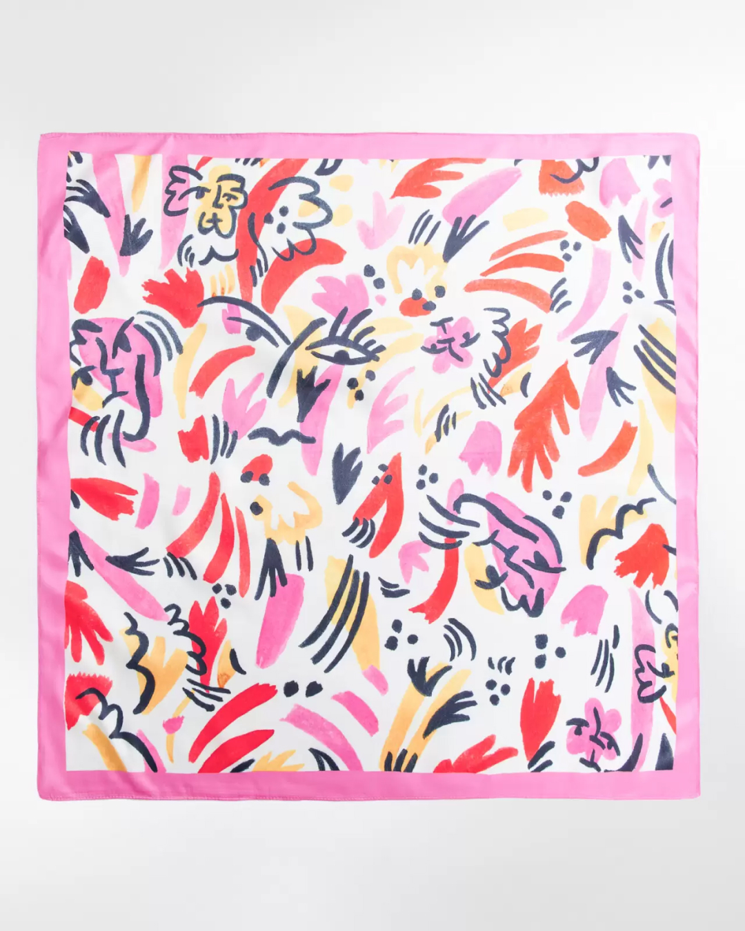 В последний летний месяц настоятельно рекомендуем (если еще нет) опробовать один из любимых приемов редакции — носить платки вместо топов. Тем, кто пока к экспериментам не готов, советуем вязать платки на голову как бандану, на шею или на запястье и в качестве аксессуара на сумку. Собрали больше десяти разноформатных, на любой цвет и по любому поводу.