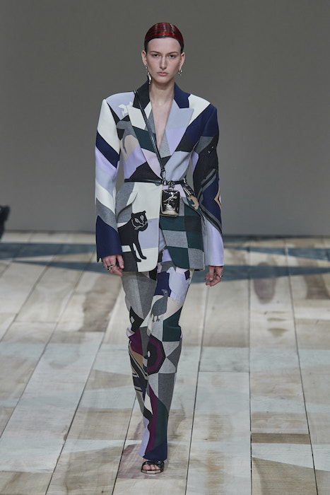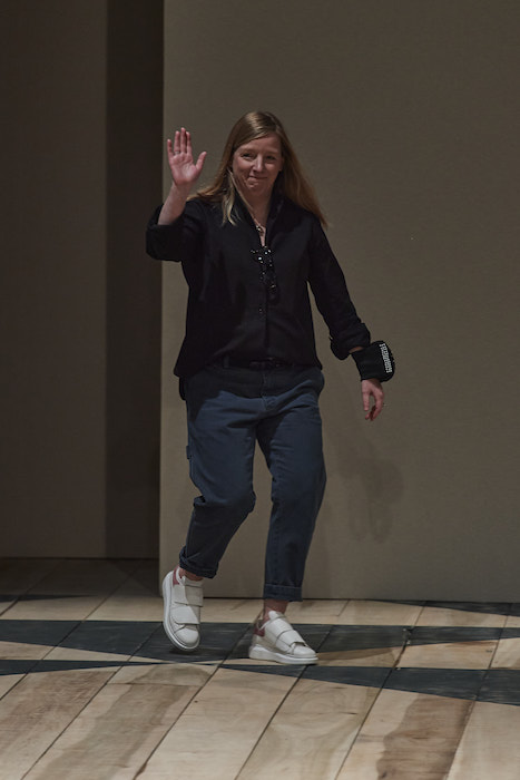 Новую коллекцию Сара Бертон готовила, основываясь на культуре и фольклоре Уэльса. Самое очевидное — это клетка «принц Уэльский», из которой сшиты костюмы. Двусторонние кашемировые пальто вдохновлены традиционным уэльским пледом, который исторически производили из шерсти черных овец. Платья на одно плечо повторяют очертания уэльских клетчатых платков, которые местные женщины используют для переноски детей. На однобортном разноцветном костюме можно разглядеть фигуры пантеры, лошади, тюленя и голубей — Сара Бертон использовала паттерн фланелевого одеяла 1842 года из Национального музея Уэльса. Исторический смысл есть даже у оттенка красного, в котором выполнены атласный костюм и платья с пышными рукавами, — цвет отсылает к Kennixton Farmhouse, фермерскому дому, построенному в начале XVII века: считалось, что красный цвет защищает жилище от злых духов.