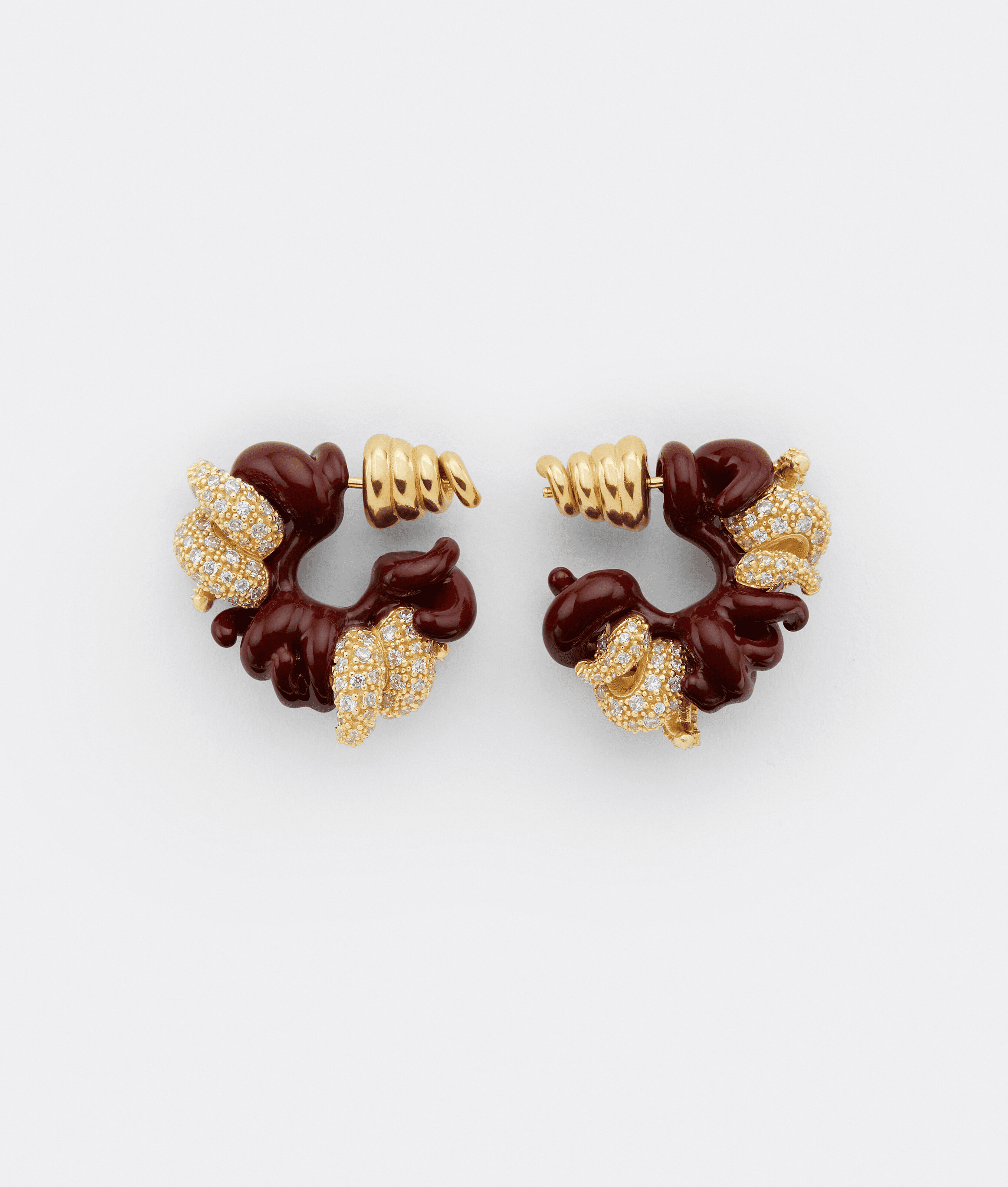 Помните мегахитовые серьги-спиральки Bottega Veneta, похожие то ли на резинку для волос, то ли на телефонный провод? В этом сезоне они круто преобразились. И больше никаких ассоциаций с резинкой — только с сокровищами морских глубин.