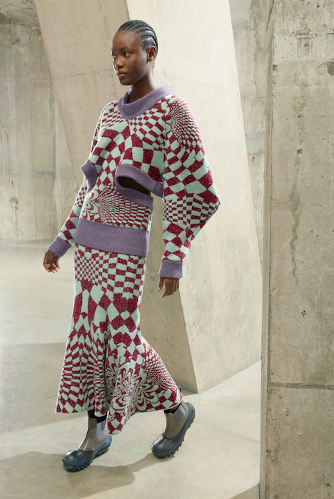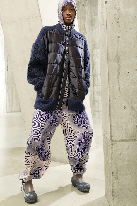 В сезоне осень-зима 2021 Стелла Маккартни не участвовала в Парижской неделе моды — новую коллекцию она представила вне расписания в лондонской галерее «Тейт Модерн». В коллекцию вошли платья в духоподъемных оттенках, брюки клеш на манер 1970-х, анораки и трикотажные костюмы с психоделическими принтами — по словам дизайнера, она рассматривала одежду как одну из форм эскапизма. Спасением от скуки и заурядности также могут стать сверкающие комбинезоны на одно плечо, очевидно вдохновленные Дэвидом Боуи, и яркие костюмы с «пупырчатой» фактурой. Заявлено, что около 80% использованных материалов в коллекции — устойчивые: экологически чистая вискоза, веганская замша, шерсть с ответственных ферм и регенерированный нейлон, полученный из переработанных рыболовных сетей.