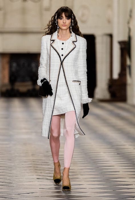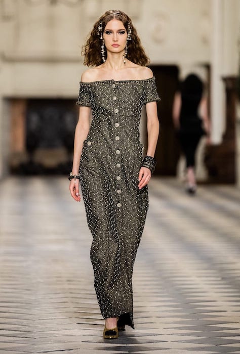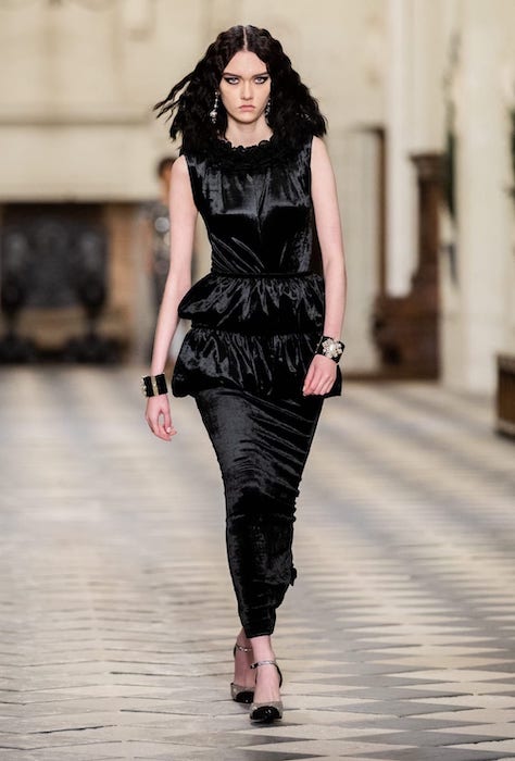 Демикутюрную коллекцию Métiers d'Art бренд традиционно готовит с помощью маленьких парижских ателье, а показ проводит в разных городах — Нью-Йорке, Риме, Эдинбурге. На этот раз локацией стал французский замок Шенонсо, который в народе называют «дамским». Шоу проходило только с одним зрителем — актрисой Кристен Стюарт. Креативный директор марки Виржини Виар рассказала, что коллекцию вдохновила сама атмосфера замка и его хозяева. Черно-белая клетка шахматного пола стала основой для мини-юбок и пальто. Кристаллы с жемчугом, выложенные ромбами, высокие воротники и расширяющиеся книзу пальто и объемные юбки отсылают к образам Екатерины Медичи, у которой по совпадению есть с Chanel кое-что общее: в качестве своей монограммы она тоже использовала две переплетенные буквы «c». В коллекции также есть длинные юбки, окрас которых словно позаимствован с гобеленов замка, блузки из органзы, а также вязаные и кожаные жилетки. Всего за Métiers d'Art стоят 38 разных ателье, которые занимаются плиссировкой, пуговицами, перьями, вышивками и так далее.
