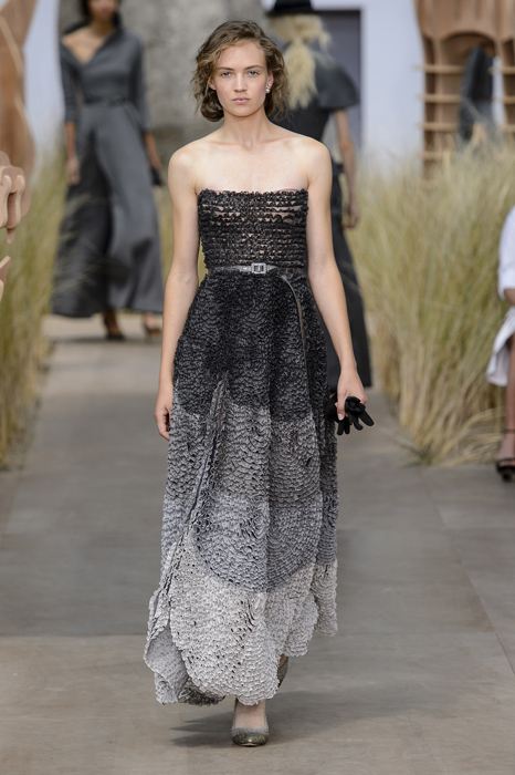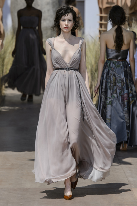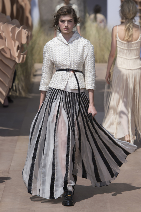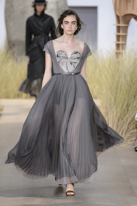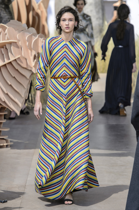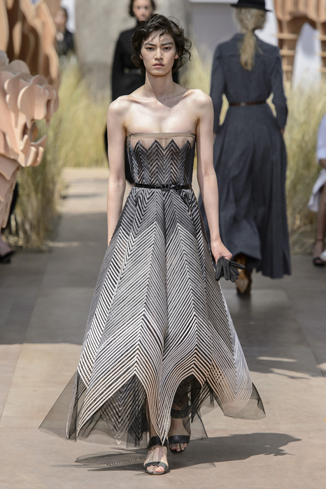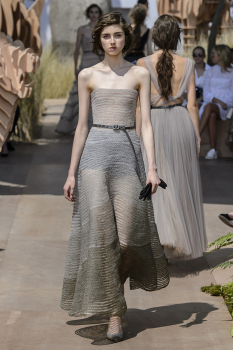 Вторая кутюрная коллекция Марии Грации Кьюри была полной противоположностью предыдущей. В этот раз кутюрный показ пришелся аккурат на 70-летие модного дома и к открытию выставки в Музее декоративного искусства, и во многом коллекция была вдохновлена страстью Кристиана Диора к путешествиям и его космополитичностью. Сама дизайнер говорит о том, что многие силуэты были заимствованы из архивов модного дома, в котором вопреки популярному мнению есть много примеров одежды для повседневной носки.