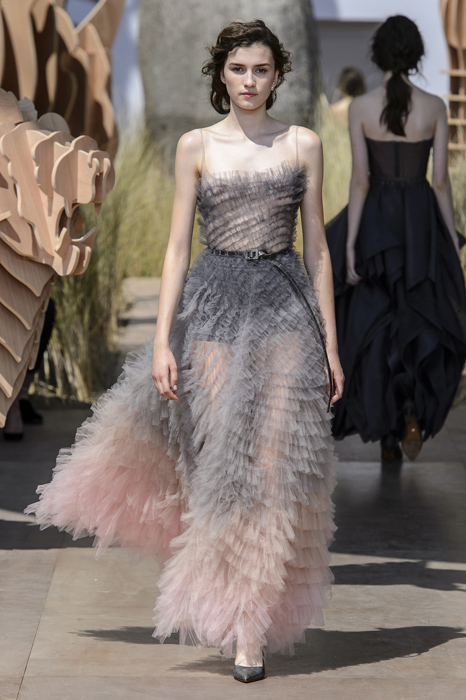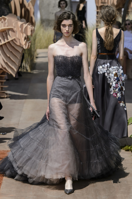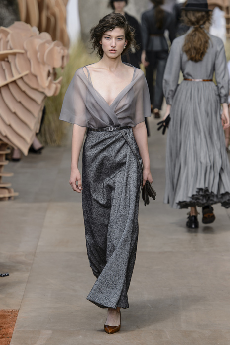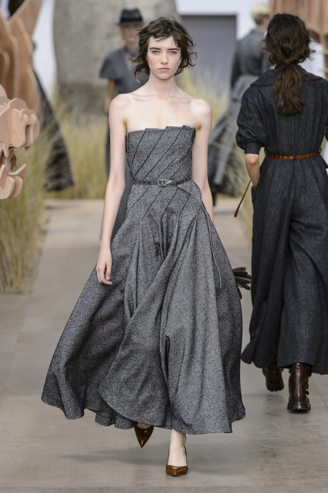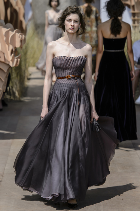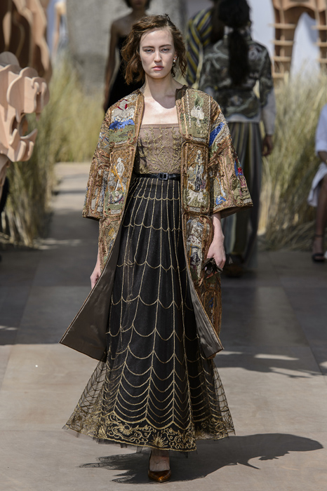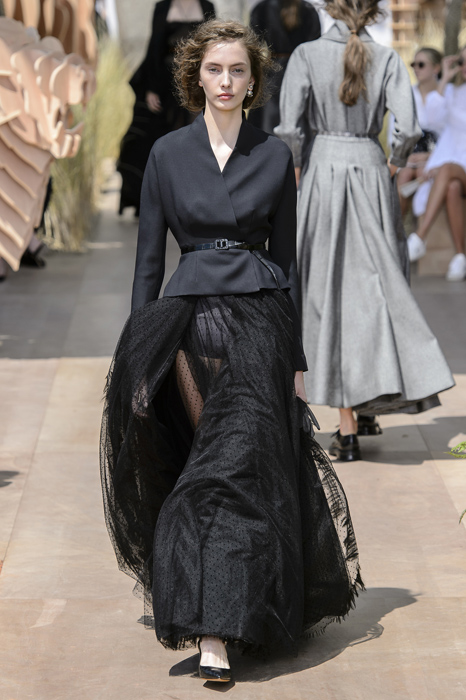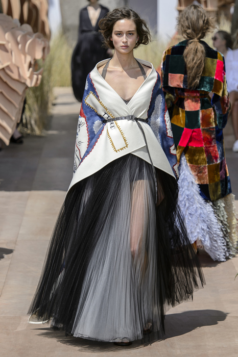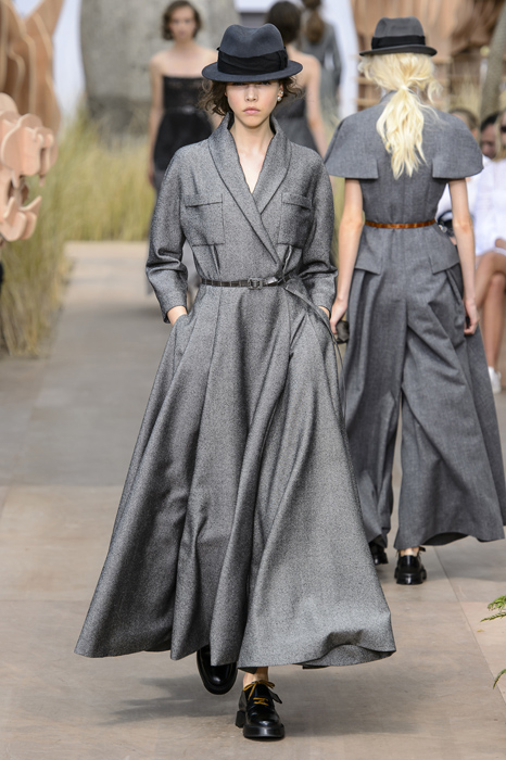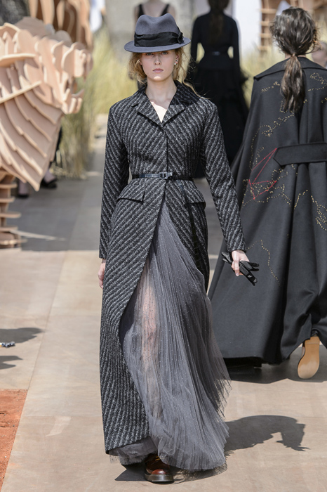 Помимо знаковых для Марии Грации Кьюри невесомых платьев из прозрачного тюля в коллекции появились вещи из плотной костюмной ткани и отсылки к мужскому тейлорингу, который в рамках коллекции приобрел статус феминистского заявления. Из кутюрной коллекции будущей осени можно собрать гардероб для женщины, которая исследует новые страны и континенты: здесь есть и функциональные пальто, и дубленка-комбинезон, одинаково уместная как на парижских улицах, так и где-нибудь в Альпах, и кимоно, отсылающие к токийским путешествиям Диора.