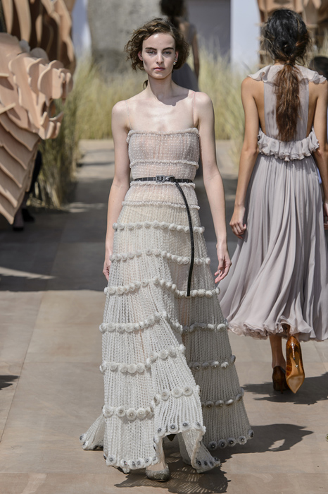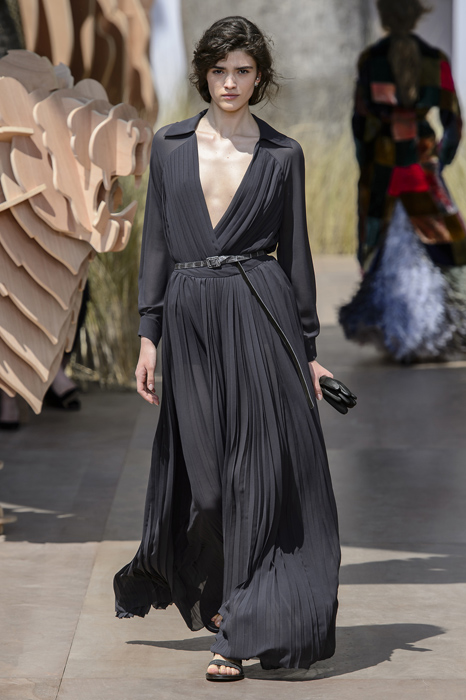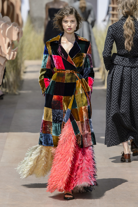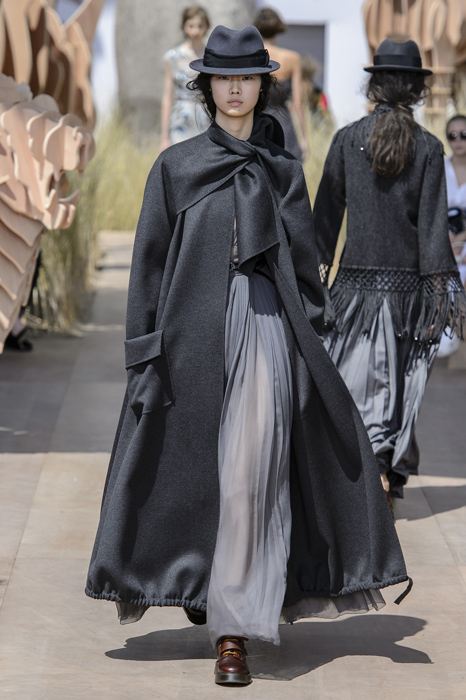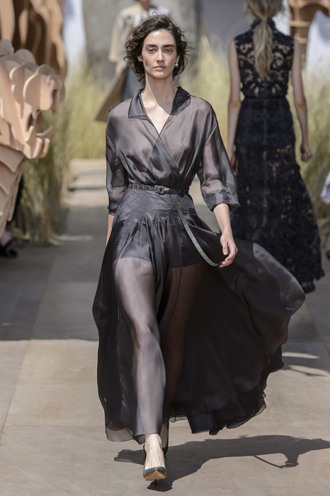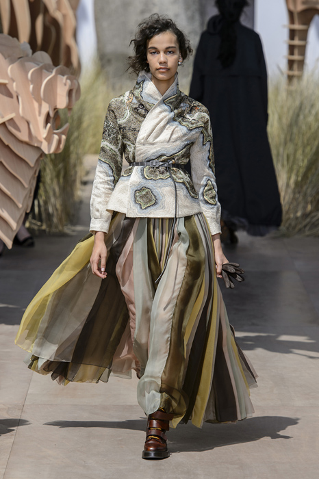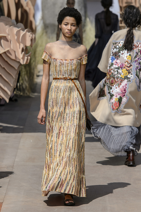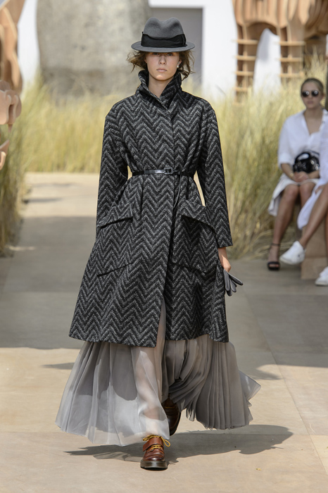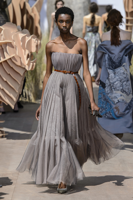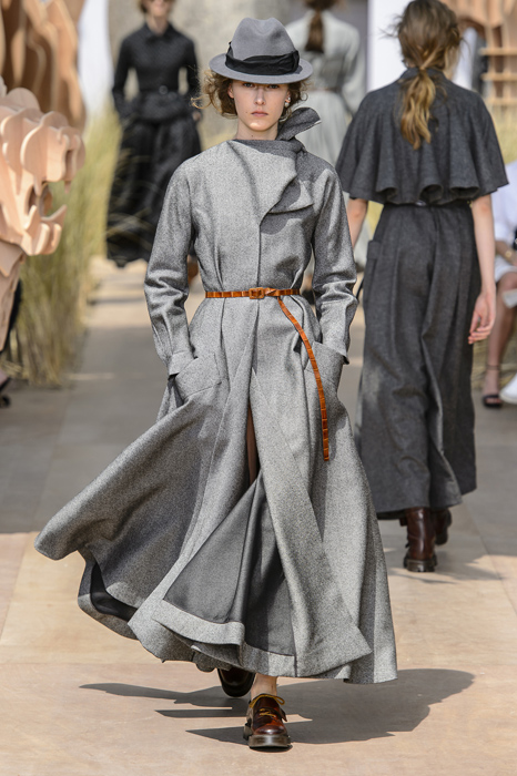 Помимо знаковых для Марии Грации Кьюри невесомых платьев из прозрачного тюля в коллекции появились вещи из плотной костюмной ткани и отсылки к мужскому тейлорингу, который в рамках коллекции приобрел статус феминистского заявления. Из кутюрной коллекции будущей осени можно собрать гардероб для женщины, которая исследует новые страны и континенты: здесь есть и функциональные пальто, и дубленка-комбинезон, одинаково уместная как на парижских улицах, так и где-нибудь в Альпах, и кимоно, отсылающие к токийским путешествиям Диора.