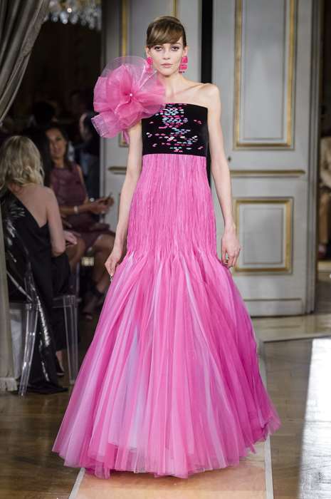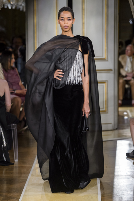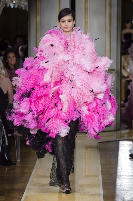 Королевская тема свела с ума весь мир еще в прошлом году благодаря помолвке, а затем и свадьбе принца Гарри и Меган Маркл. Для Джорджо Армани не составило труда придумать коллекцию, в которой каждый образ соответствовал бы запросам современных королей и аристократов, а концепция кутюра стала идеальным полем для этих экспериментов. Разумеется, здесь нет горностаевых мантий и килограммов золота — Армани ясно дал понять, что хочет одевать молодежь, пусть и обязанную соблюдать статус. Даже если вы будете просматривать коллекцию в превью, то не сможете не заметить потрясающие ткани — атлас с благородным блеском, аккуратный твид, безупречную вышивку, длинную струящуюся бахрому и тончайший шелковый шифон. По тому, как скроены каждый костюм и платье, можно смело изучать идеальный кутюр. С колористикой — то же самое: коллекция гармонично делится на две части, в одной из которых — все в бархатном черном цвете и прохладном оттенке шампанского, а вторую дизайнер дополнил электрическими фуксией и бирюзовым. Несмотря на праздничность некоторых образов, во всех них нет ничего лишнего — и это в очередной раз говорит о мастерстве Армани, который, даже делая кутюрную коллекцию, соблюдает правила миланской элегантности.