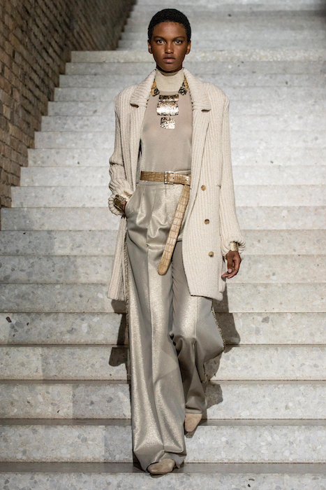 Показ круизной коллекции Max Mara прошел в Берлине — городе, который в 1980-х был заветной мечтой для креативного директора марки Яна Гриффитса, «с Bauhaus и Дэвидом Боуи». Главным ориентиром для дизайнера стал стиль Марлен Дитрих: «Она была смелой и, как Боуи, гибко подходила к гендерному вопросу: носила мужской костюм в 1930-х годах, при этом была одной из самых высокооплачиваемых актрис в мире. Такая игра с женственностью и маскулинностью очень близка Max Mara», — прокомментировал коллекцию дизайнер.