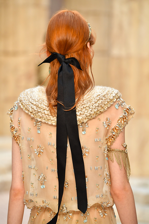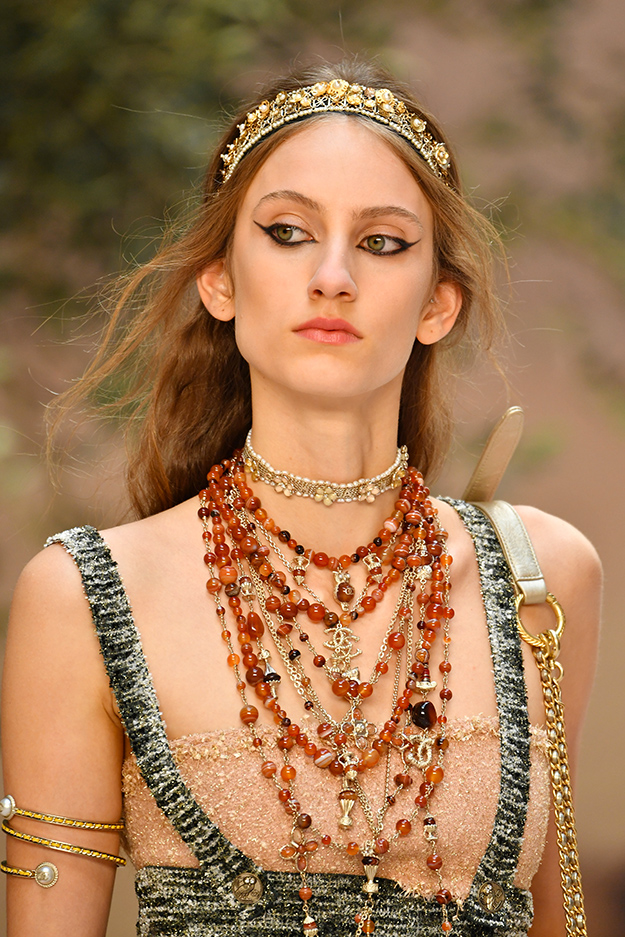 Куда только не приглашал своих гостей Карл Лагерфельд в рамках резортных показов — в Сеул, Гавану и Дубай. В этот раз дизайнер решил вернуться в Париж, а главной темой коллекции сделал Древнюю Грецию. Афинская тематика стала отнюдь не случайной: показ прошел в Галерее Курбе в Гран-Пале, где находится копия Ники без головы, которая когда-то стояла в апартаментах Габриэль на улице Камбон. К тому же коллекция отсылает к временам, когда Коко Шанель занималась костюмами для постановки древнегреческой трагедии «Антигона» в прочтении Жана Кокто.