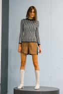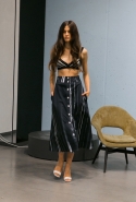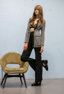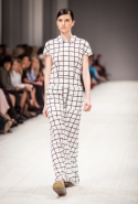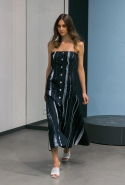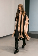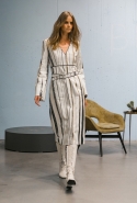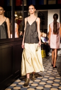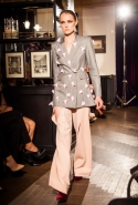 Новая коллекция Светланы Бевзы — очередной оммаж эпохе конца 60-х и начала 70-х. В центре внимания — Лондон или, как его назвала когда-то Диана Вриланд, "самый свингующий город в мире". Поэтому в коллекции встречаются и крохотные шорты на талии, надетые с высокими сапогами на невысоком квадратном каблуке, в которых могла бы щеголять по улицам Джин Шримптон, и платья-бюстье, и расклешенные брюки, и хиппи-пончо. Основными цветами оказались белый, черный и бежевый, ставший едва ли не главным оттенком уже 70-х годов, а платья и юбки в крупную клетку — о моде на графичные узоры оп-арта, пик популярности которого пришелся на 60-е.