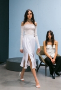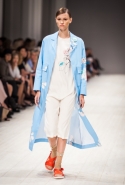 Наталья Каменская и Олеся Кононова, в прошлом сезоне сменившие "фамильное" название своей марки на короткое и запоминающееся Lake, тоже представили в Киеве свою весенне-летнюю коллекцию. Главным вдохновением, по словам дизайнеров, на этот раз стал ветер, "который, словно скульптор природы, веками возводит, созидает, изменяет и ломает формы, выстраивая новые образы". Поэтому и получилась коллекция по-весеннему свежей, воздушной, в пастельных оттенках голубого, нежно-розового и лилового. На подиум выходят девушки в платьях-халатах, небрежно перехваченных поясами на талии, объемных топах с воздушными рукавами и легких костюмах. Даже пальто похожи на наполненные газом воздушные шарики или аккуратно прошагивающие по подиуму облачка на тонких ножках. И даже геометричные вставки, наслаивающиеся друг на друга квадраты и прямоугольники ткани и туго скрученные угловатые "банты" не разрушают этой весенней безмятежности.
