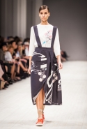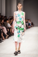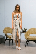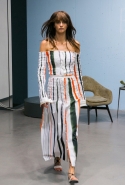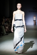 Главной особенностью безупречно элегантной коллекции ELENAREVA стали, безусловно, принты, украшающие и топы с пышными басками, и корсеты платьев, и юбки годе, и изысканные вечерние наряды целиком. Дизайнер каждый сезон приглашает к сотрудничеству нового художника, вместе с которым работает и над принтами, и над общей концепцией показа. На этот раз выбор пал на Катерину Либкинд, которая придумала и нарисовала для Елены принт из отпечатков краски на ткани и нежнейших пастельных разводов.