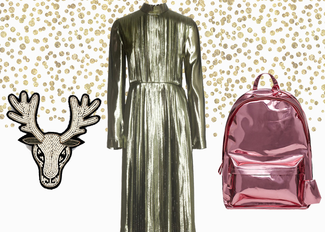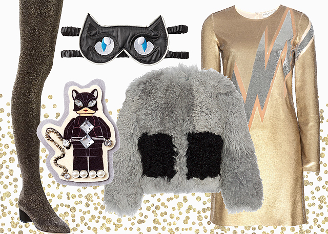 Независимо от того, где, с кем и как вы собираетесь отмечать Новый год, подобрать веселый и яркий праздничный наряд можно в любом случае. Нам кажется забавной идея добавить к новогодней вечеринке элемент маскарада: если задача не просто красиво одеться, но и войти в образ, жизнь на одну ночь обретает дополнительный смысл. Стараться так же, как на Хеллоуин, смысла нет, но пару «говорящих» деталей добавить можно. Например, кошачью маску и супергеройскую брошку к золотистому наряду чудо-девушки, чтобы и без лишнего уклона в сторону Женщины-Кошки, и в меру иронично.
