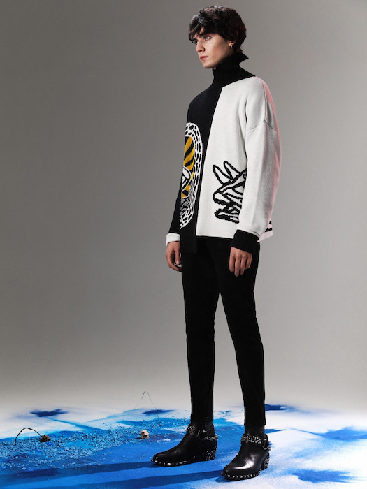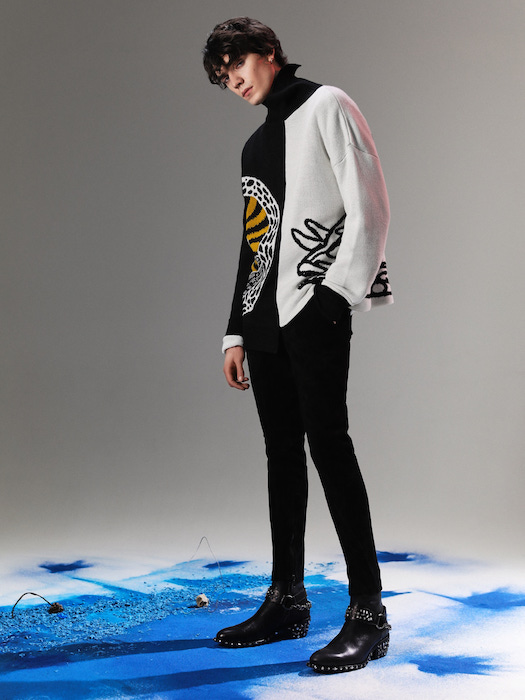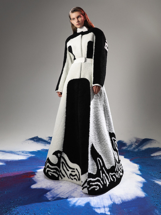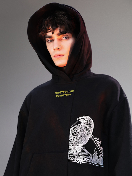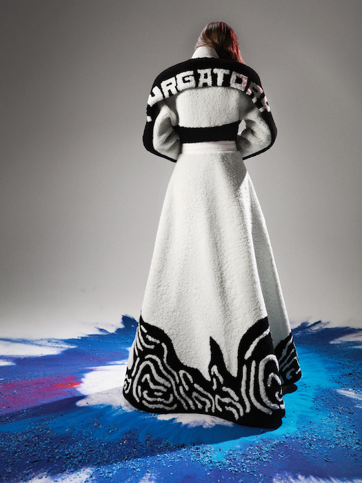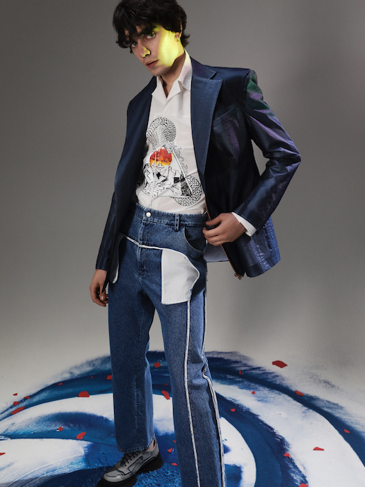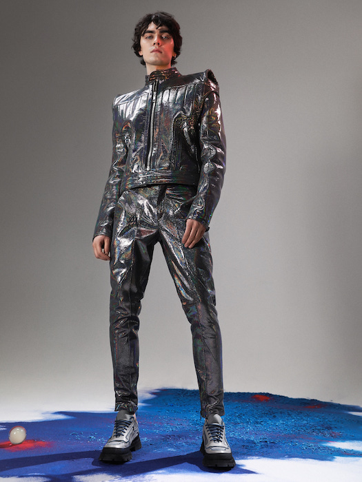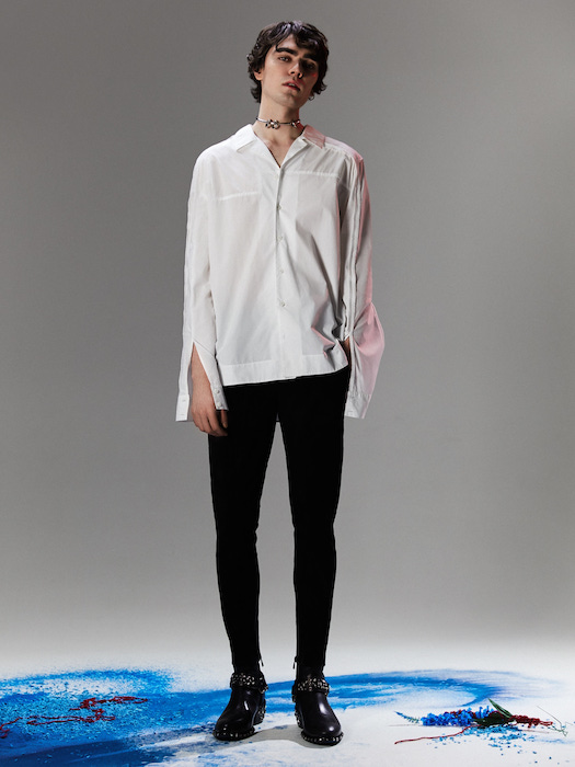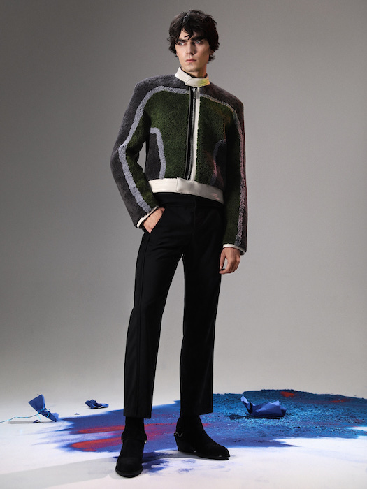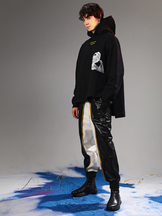 Выпускница Polimoda Ольга Васюкова по первому образованию инженер путей сообщений — этим фактом можно объяснить непростые конструкции конструкции ее вещей: двойные плечи на жакетах, которые меняют очертания силуэта, драпировки на рубашках, сложноскроенные брюки с накладными карманами, джинсовые бомберы-доспехи. В коллекции много кожаных вещей: есть черно-белые юбки-карандаши, пиджаки и куртки с акцентированной линией плеча.